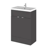 Hudson Reed Fusion 600mm Anthracite Woodgrain Floor Standing 2 Door Vanity Unit with Basin and Handles