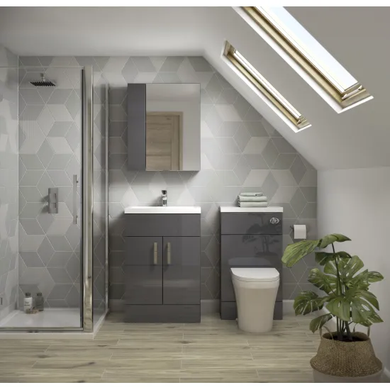 If you prefer a more glossy finish in your bathroom, why not opt for our fitted furniture in high gloss grey to add a contemporary twist