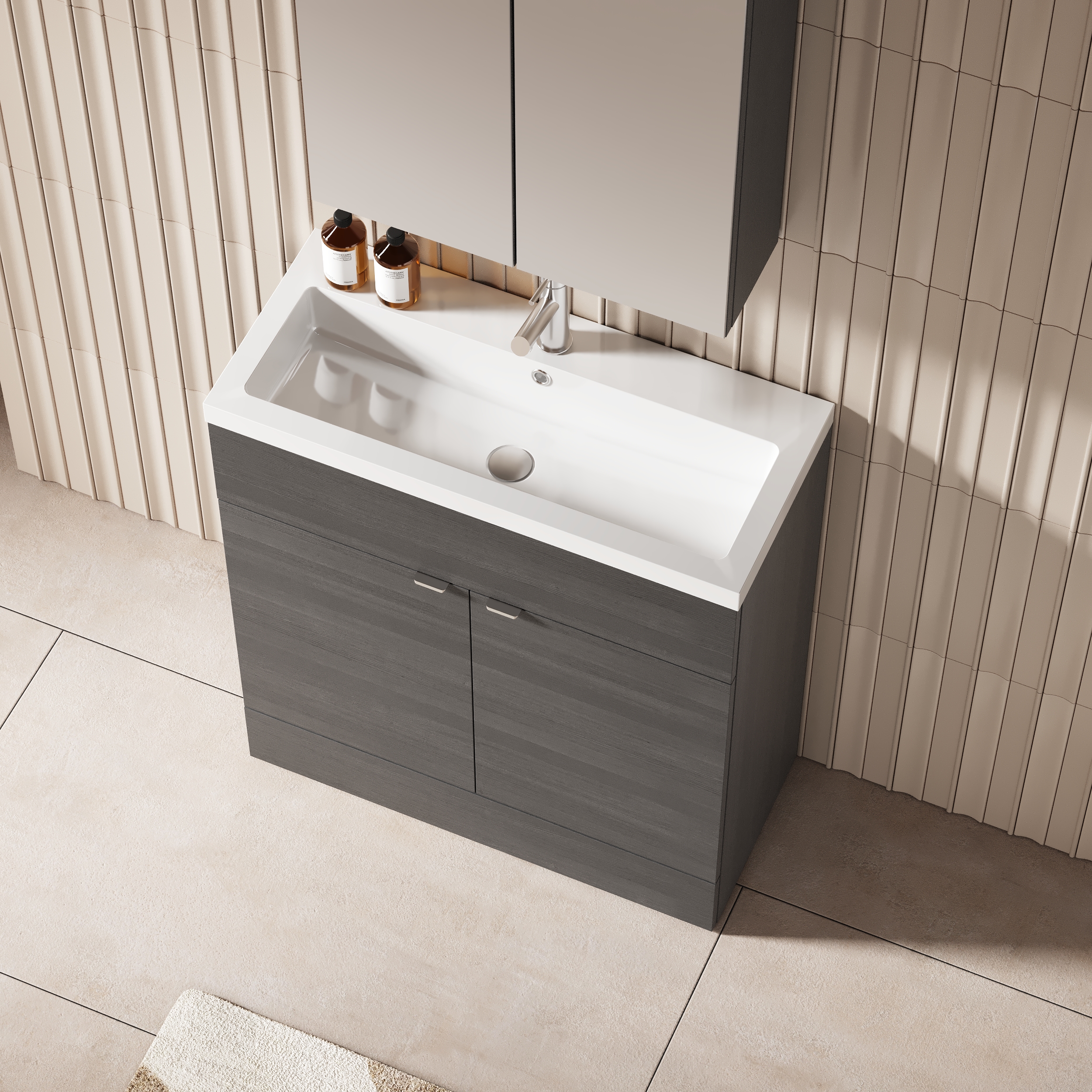 Hudson Reed Fusion 800mm Anthracite Woodgrain Floor Standing 2 Door Vanity Unit & Polymarble Basin