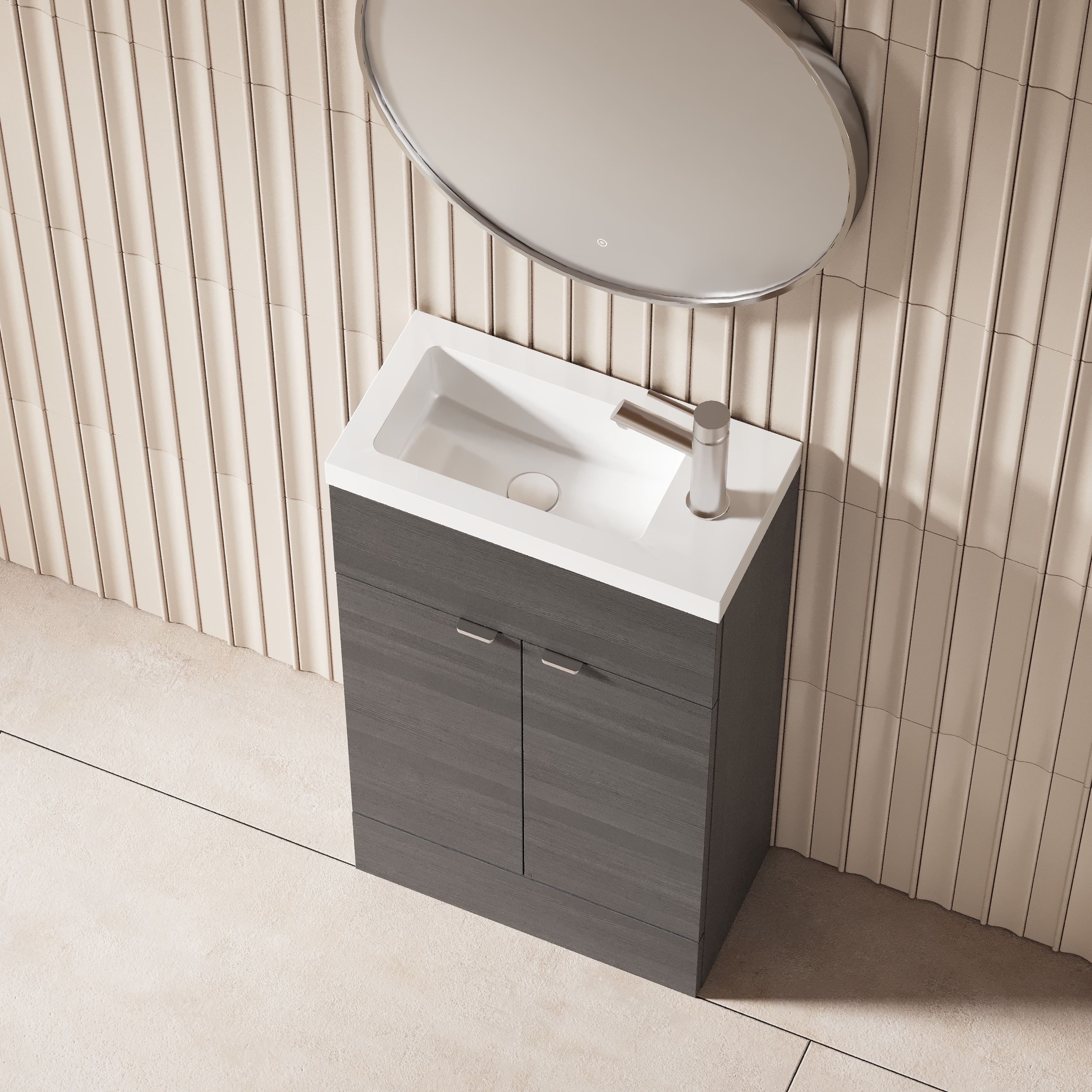 Hudson Reed Fusion Floor Standing 2 Door Vanity Unit & Polymarble Basin Compact 500mm - Anthracite Woodgrain