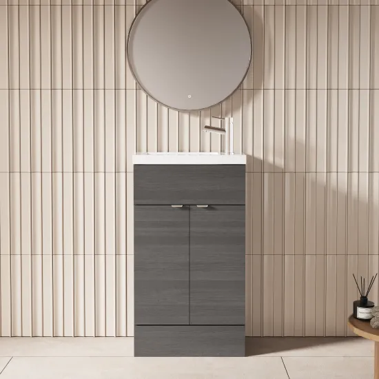 Hudson Reed Fusion 505mm Anthracite Woodgrain Floor Standing 2 Door Vanity Unit with Basin