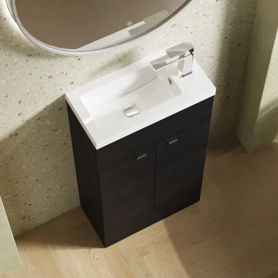 Hudson Reed Fusion Floor Standing 2 Door Vanity Unit & Polymarble Basin Compact 500mm - Hacienda Black