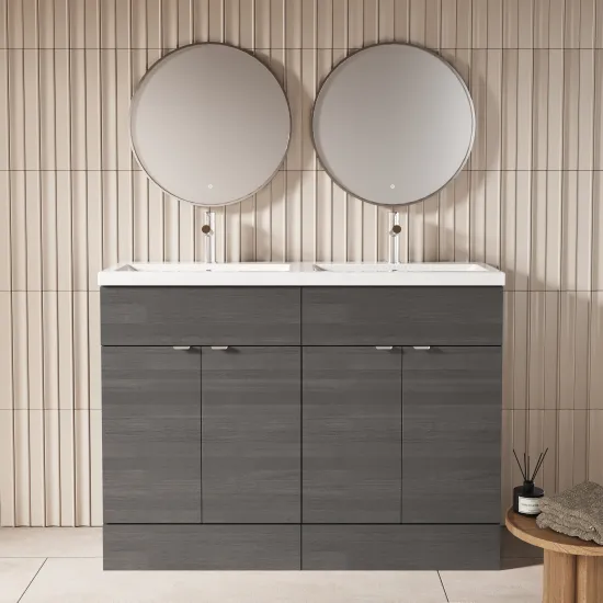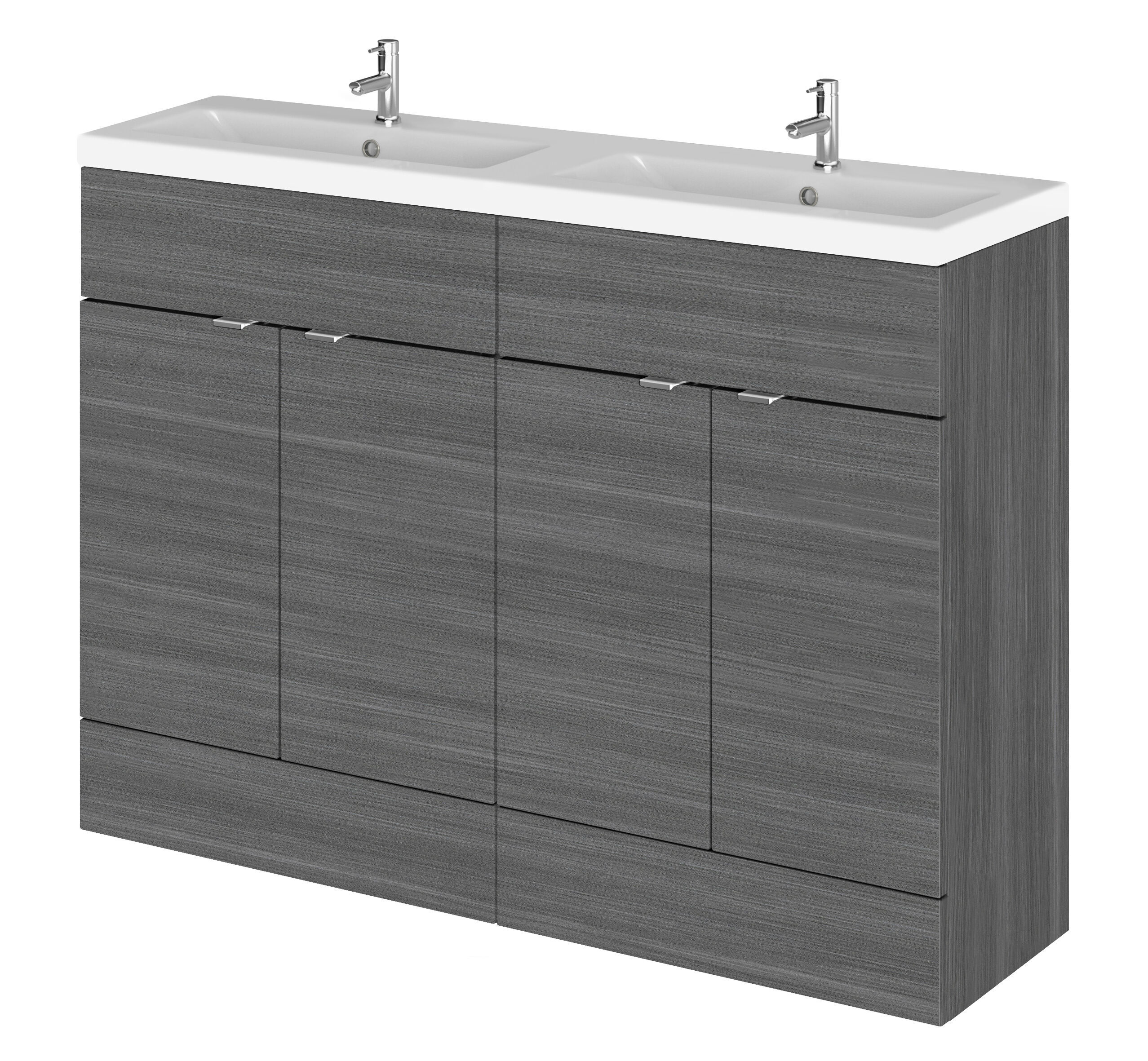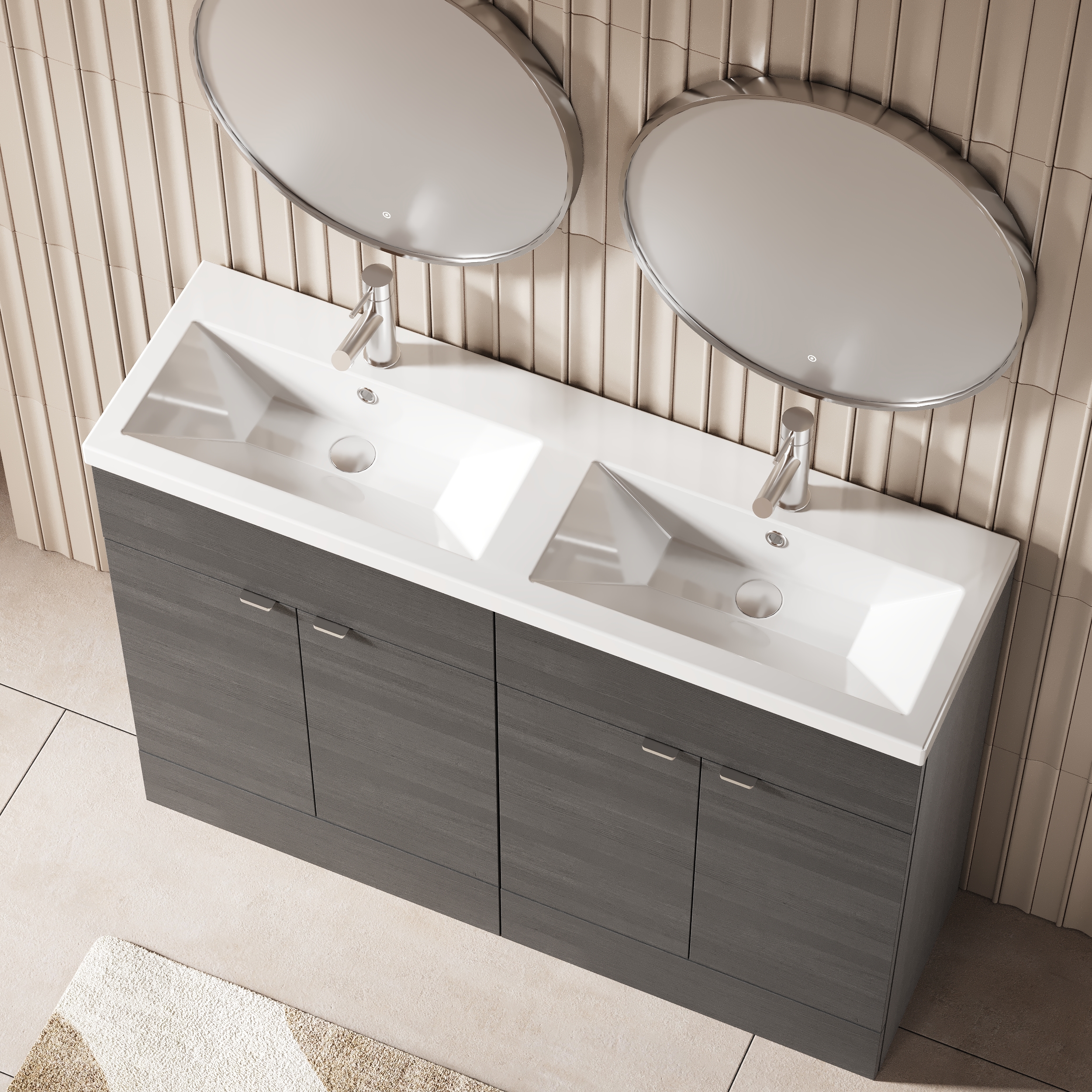 Hudson Reed Fusion Floor Standing 4 Drawer Vanity Unit & Twin Ceramic Basin 1200mm - Anthracite Woodgrain