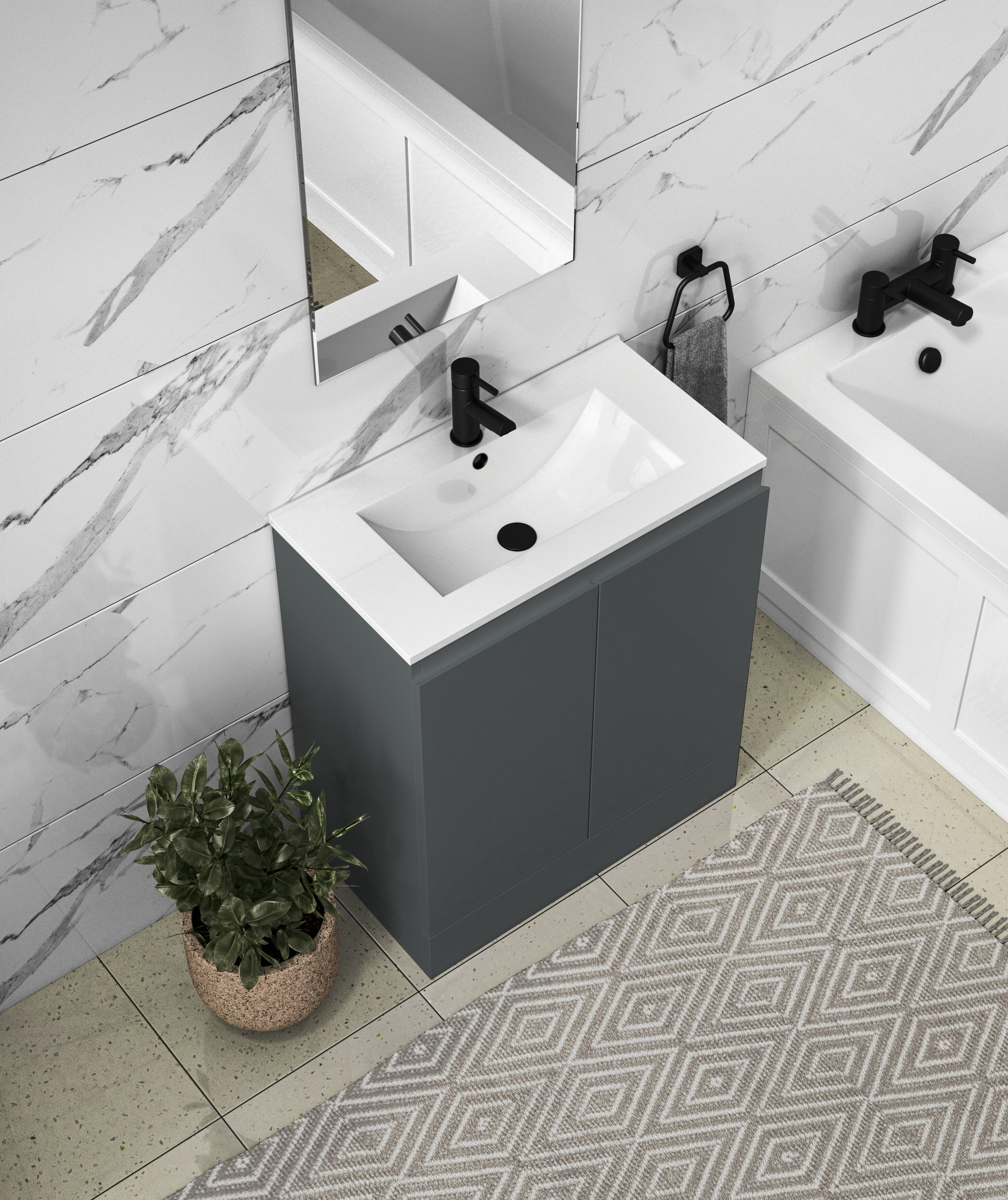 Halite 500mm Matt Grey Unit With Basin