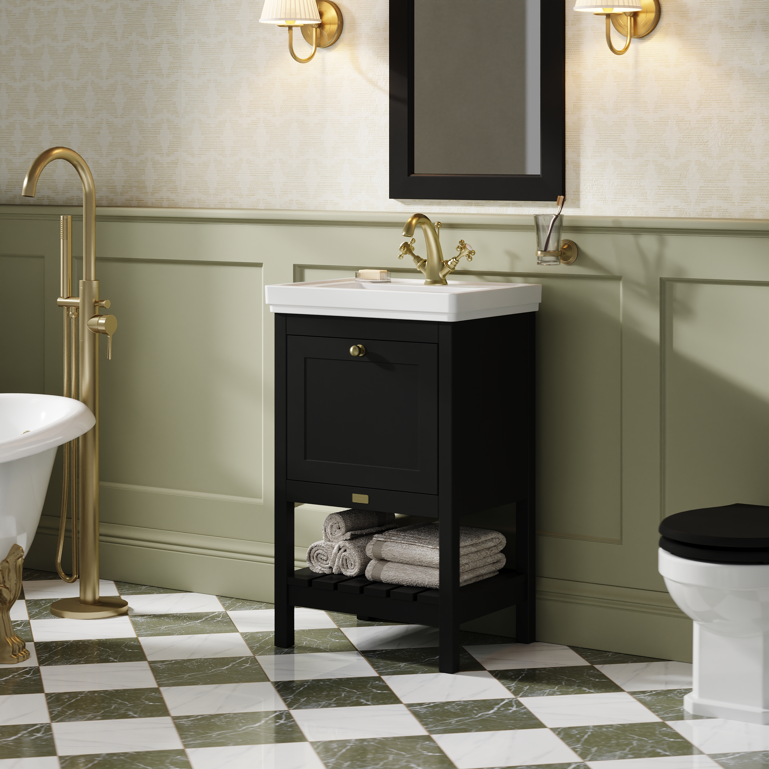 Bayswater Hartleigh 500mm 1 Drawer Matt Black Floor Standing Vanity Unit With 1 Tap Hole Basin