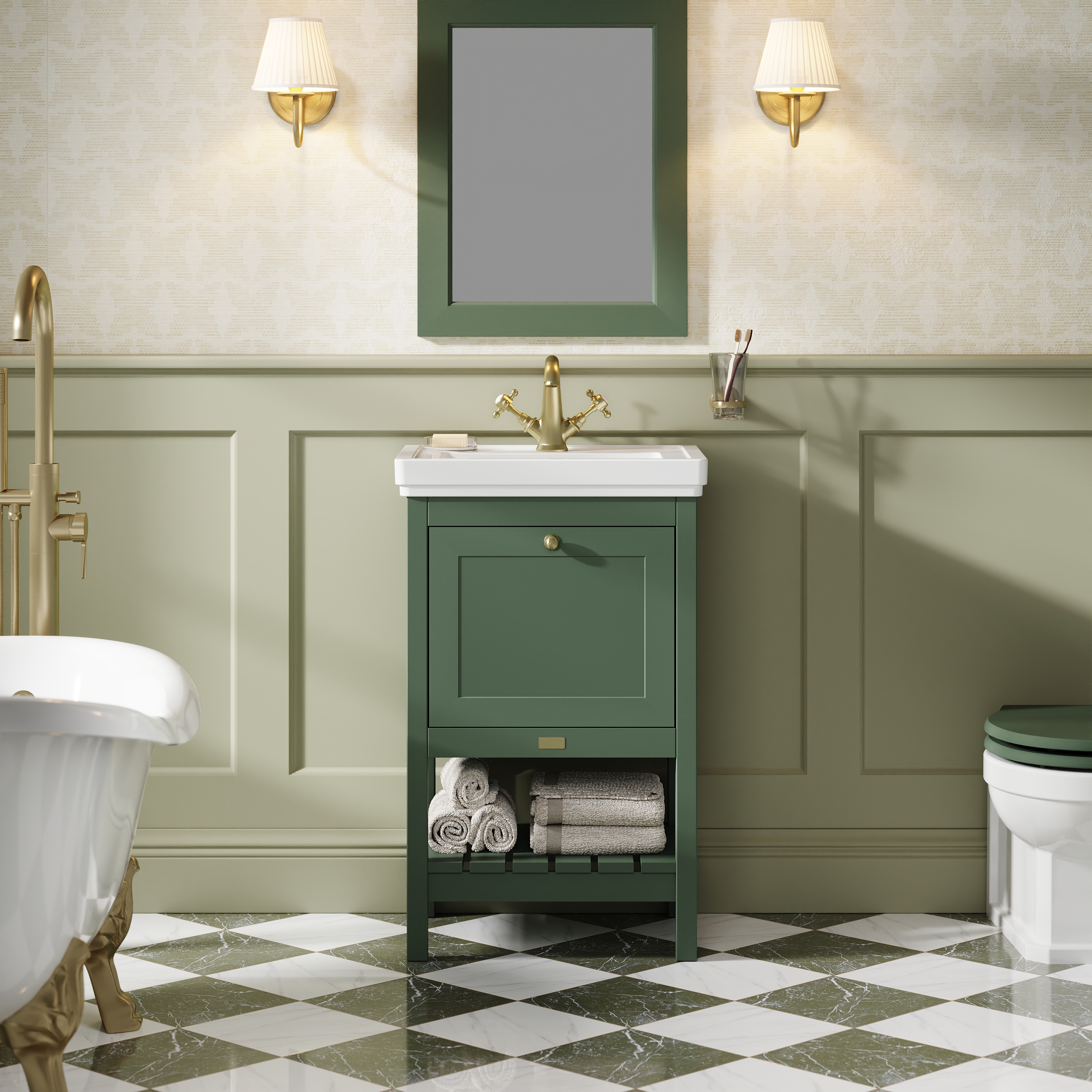 Bayswater Hartleigh 500mm 1 Drawer Cabinet and 1TH Basin - Hunter Green