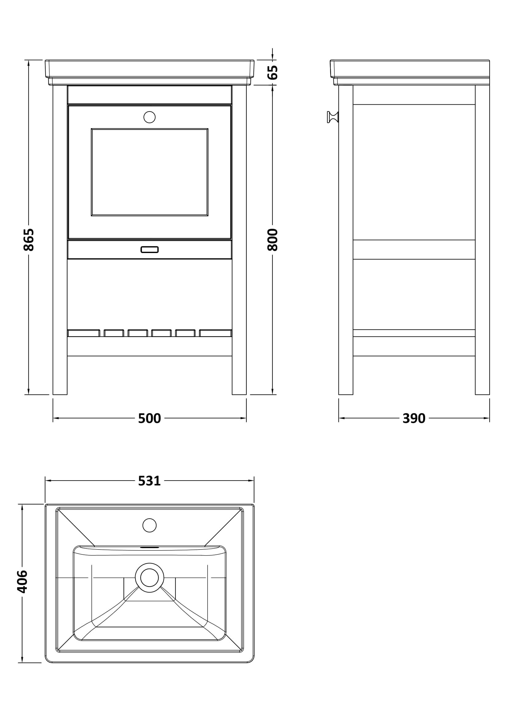 Hartleigh 500mm 1 Drawer Cabinet and 1TH Basin