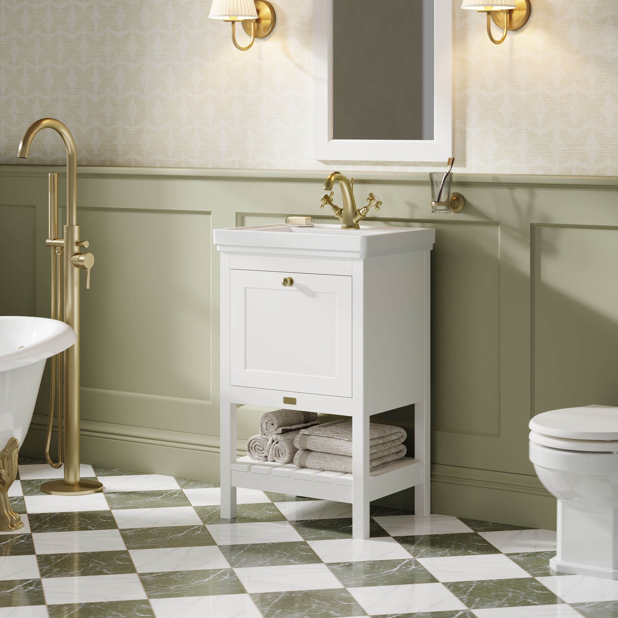 Bayswater Hartleigh 500mm Pointing White 1 Drawer Floor Standing Vanity Unit With 1 Tap Hole Basin