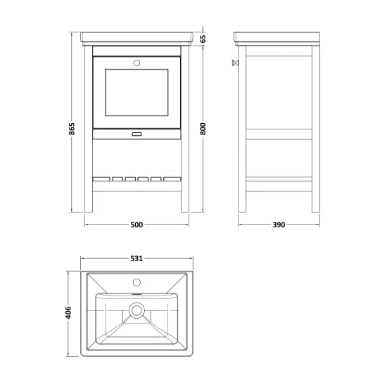 Bayswater Hartleigh 500mm 1 Drawer Cabinet and 1TH Basin - Pointing White