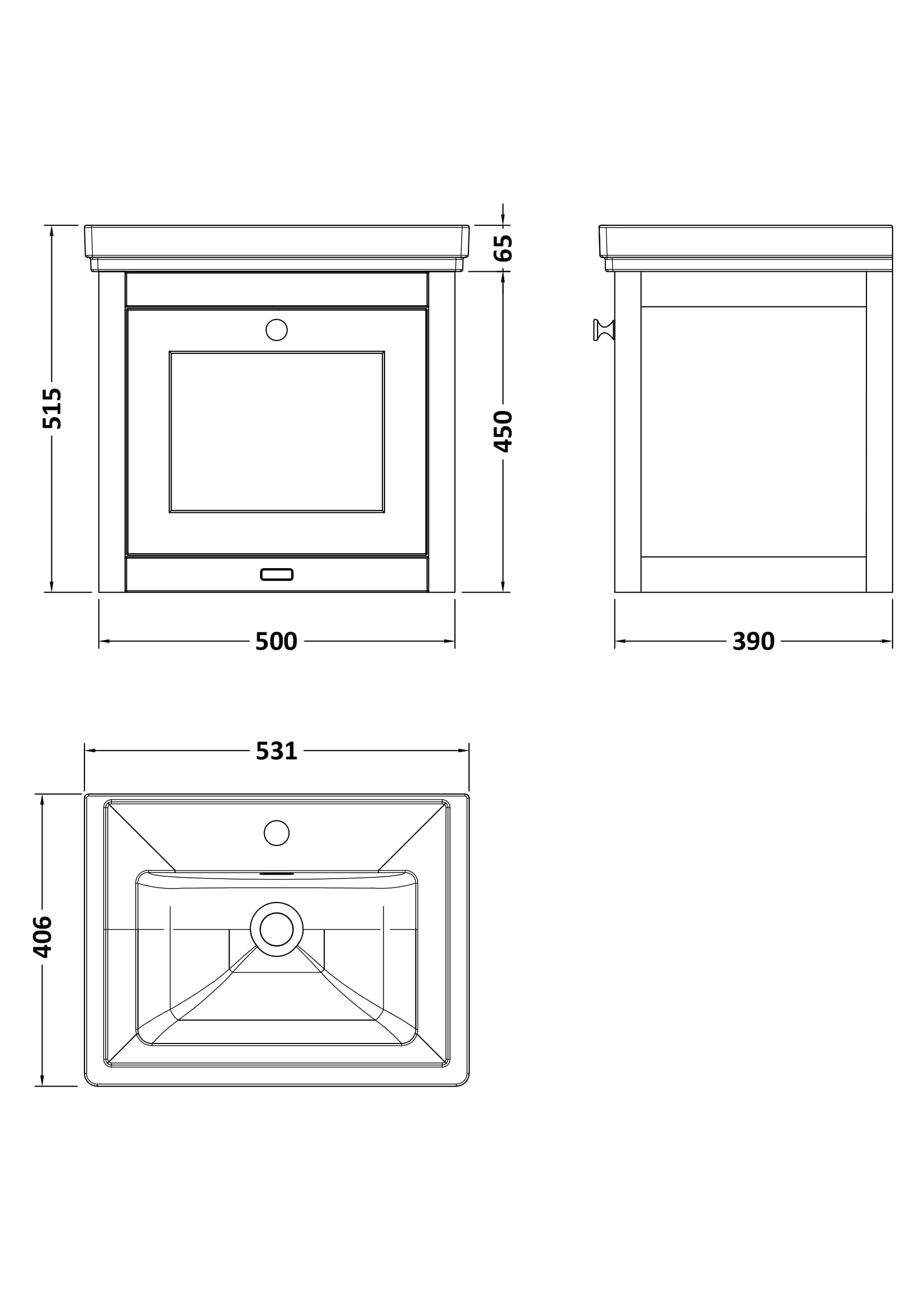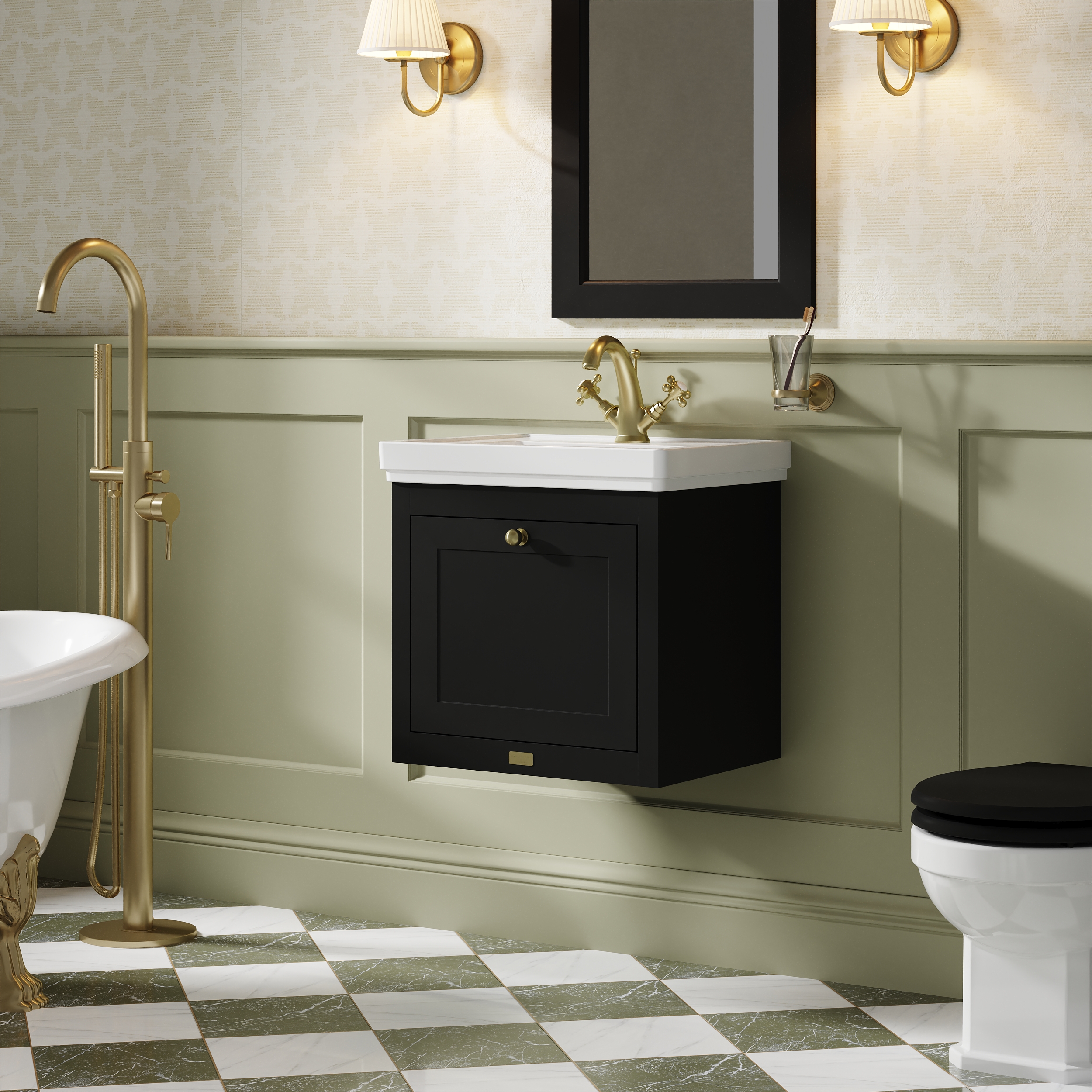 Bayswater Hartleigh 500mm Matt Black Wall Hung 1 Drawer Vanity Unit With 1 Tap Hole Basin