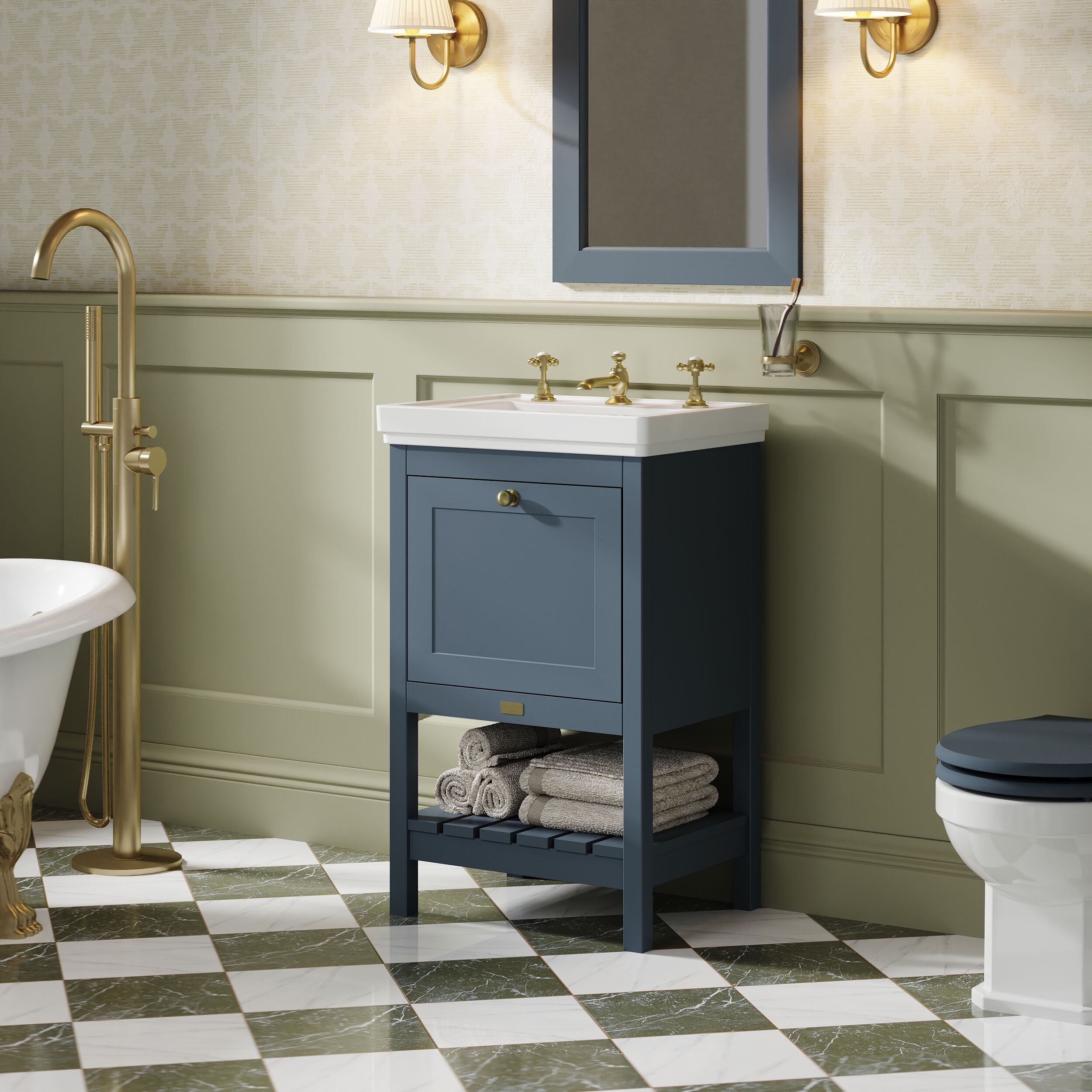 Bayswater Hartleigh 500mm Stiffkey Blue 1 Drawer Vanity Unit with 3 Tap Hole Basin