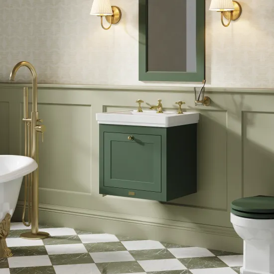 Bayswater Hartleigh 500mm Hunter Green 1 Drawer Wall Hung Vanity Unit with 3 Tap Hole Basin