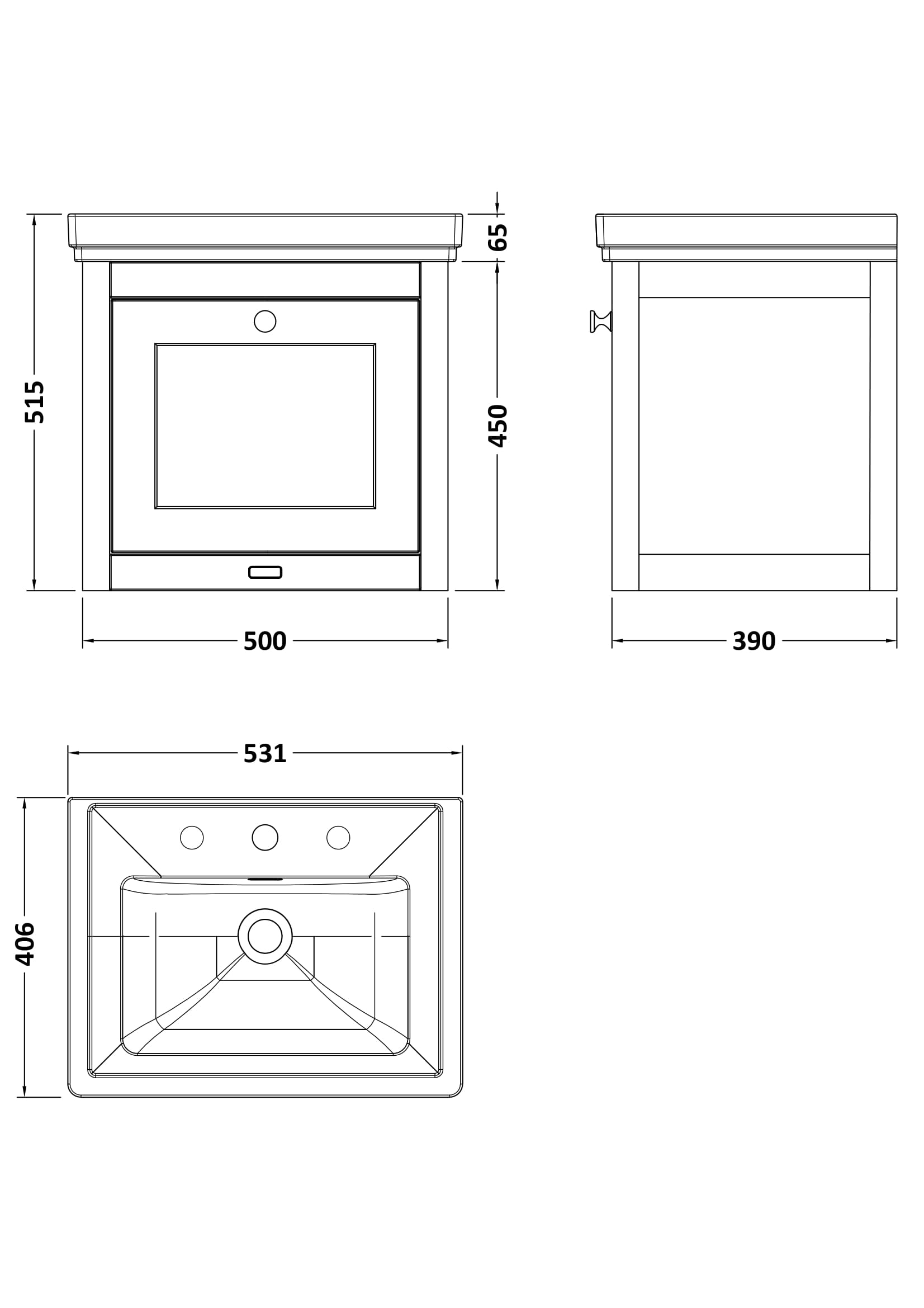 Bayswater Hartleigh 500mm Wall Hung Vanity Unit With 3 Tap Hole Basin