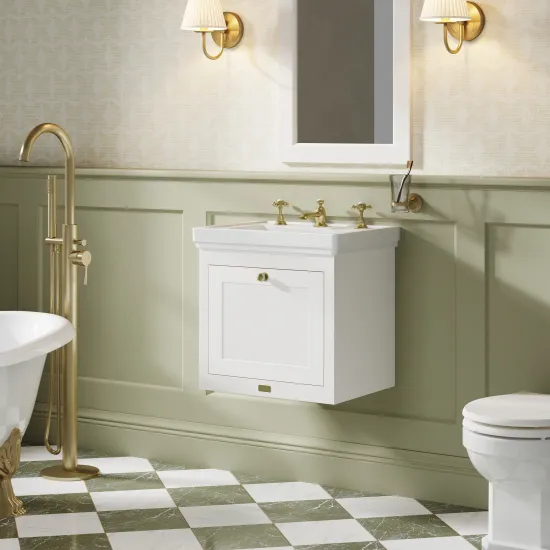 Bayswater Hartleigh 500mm 1 Drawer Cabinet and 3TH Basin - Pointing White