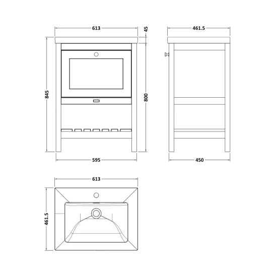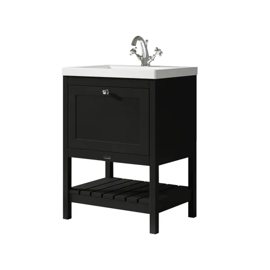 Bayswater Hartleigh 600mm Matt Black Traditional Floor Standing Vanity Unit With 1 Tap Hole Basin