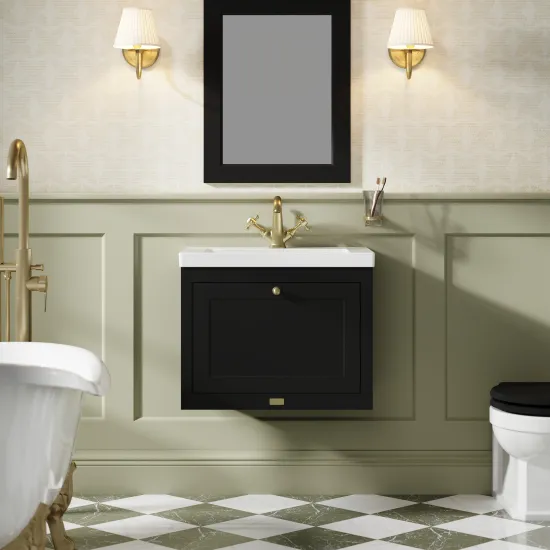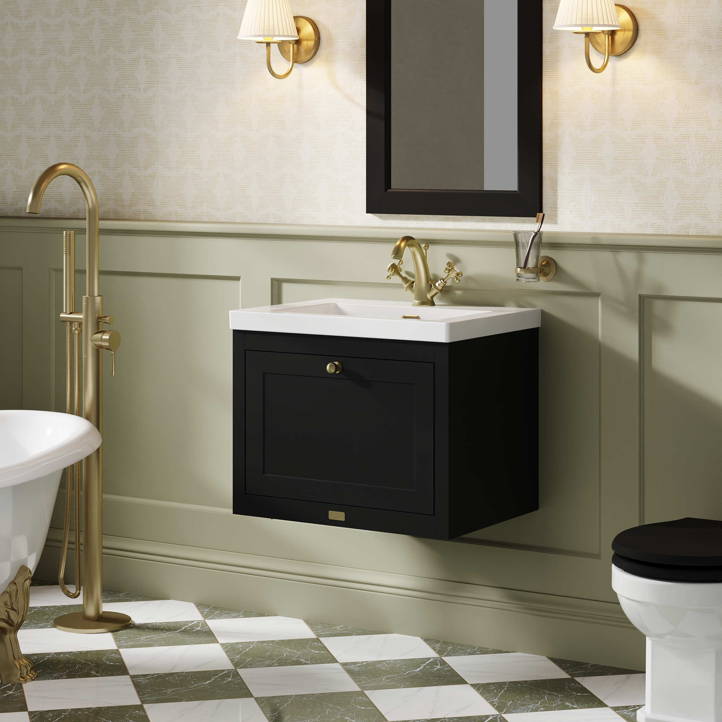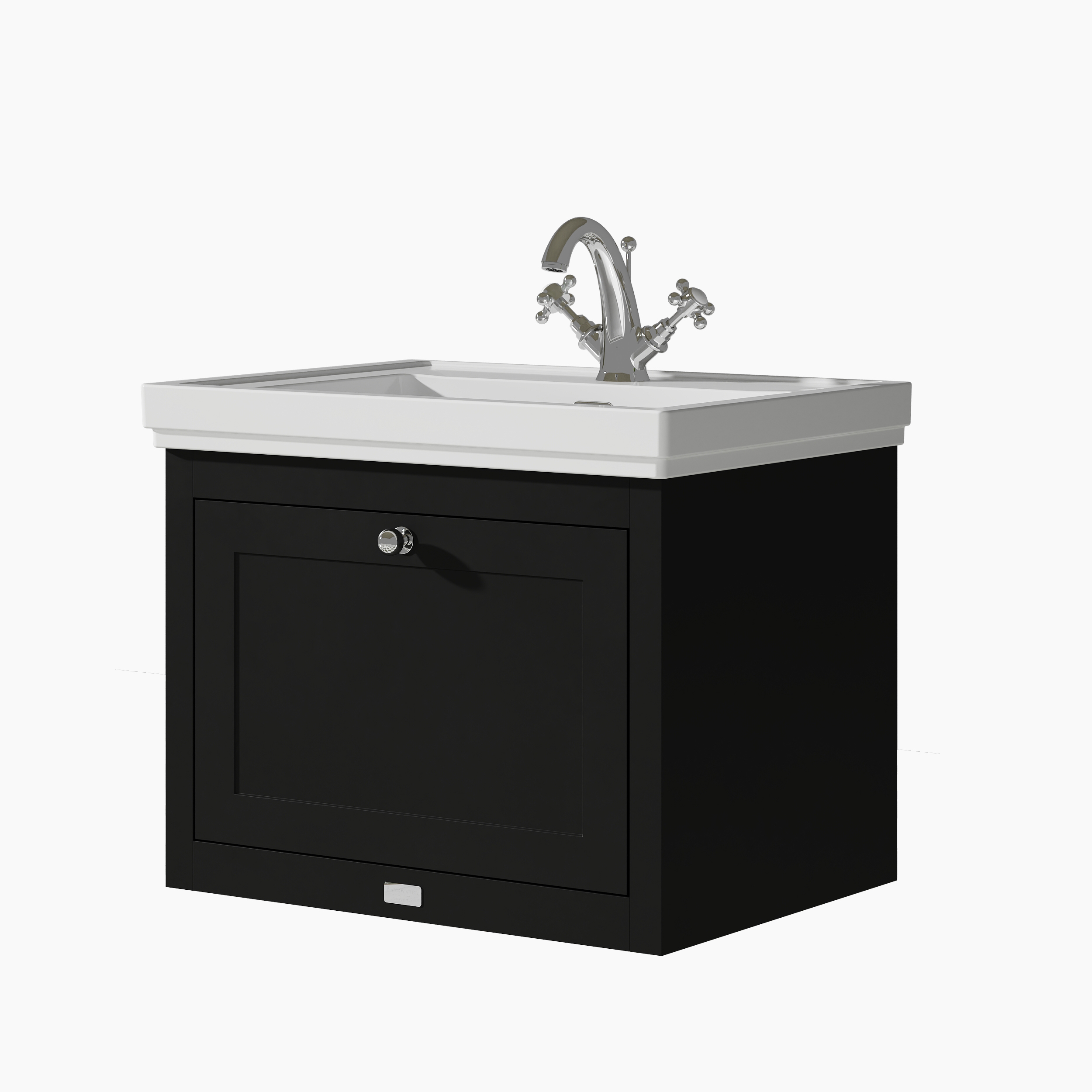 Bayswater Hartleigh 600mm Matt Black 1 Drawer Wall Hung Vanity Unit With 1 Tap Hole Basin