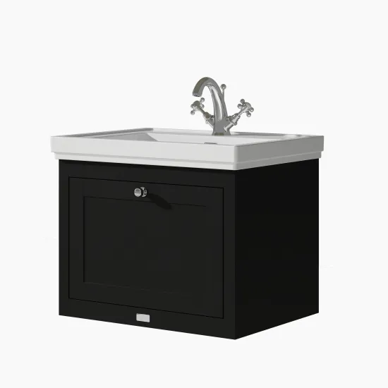 Bayswater Hartleigh 600mm 1 Drawer Cabinet and 1TH Basin - Matt Black