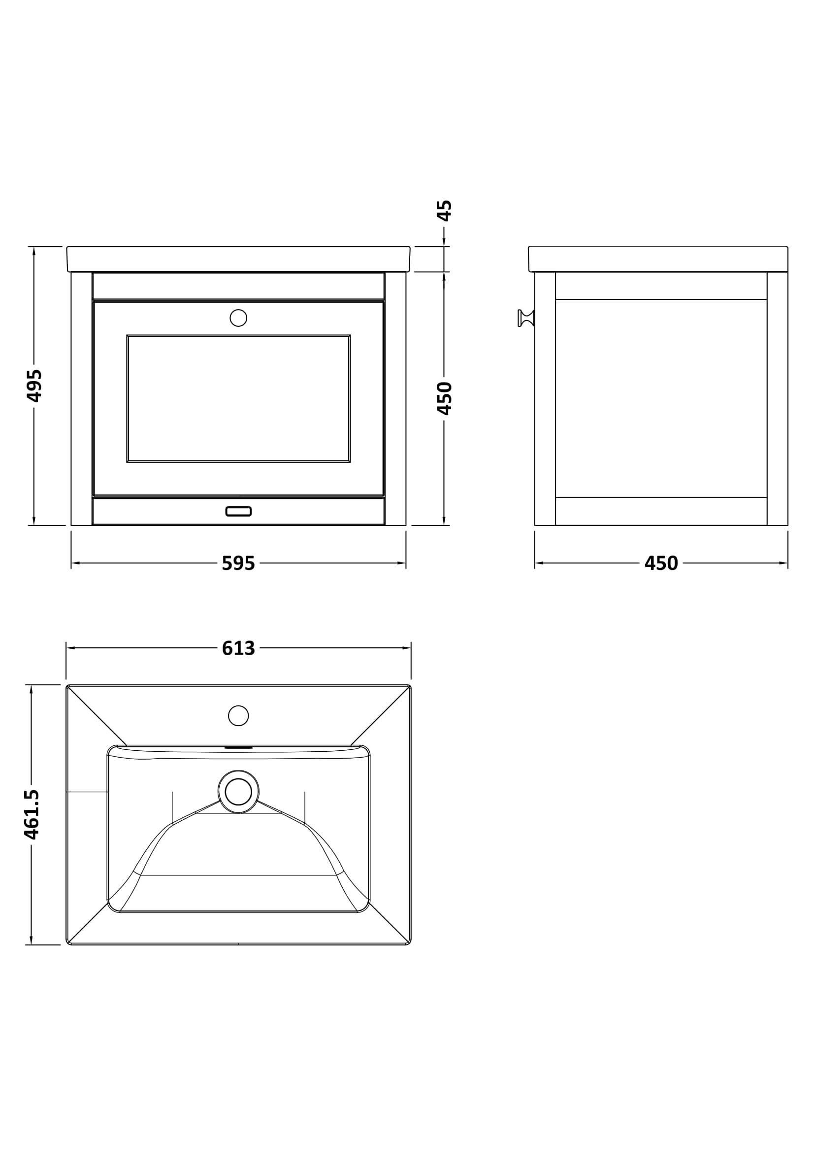 Hartleigh 600mm 1 Drawer Cabinet and 1TH Basin