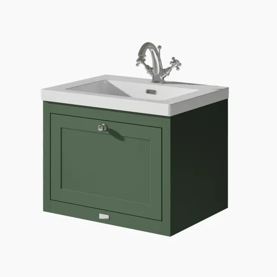 Bayswater Hartleigh 600mm 1 Drawer Cabinet and 1TH Basin - Hunter Green