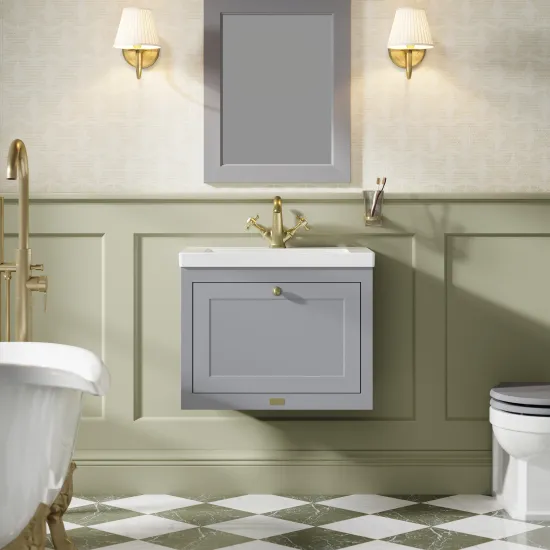 Bayswater Hartleigh 600mm Plummett Grey Wall Hung Vanity Unit With 1 Tap Hole Basin