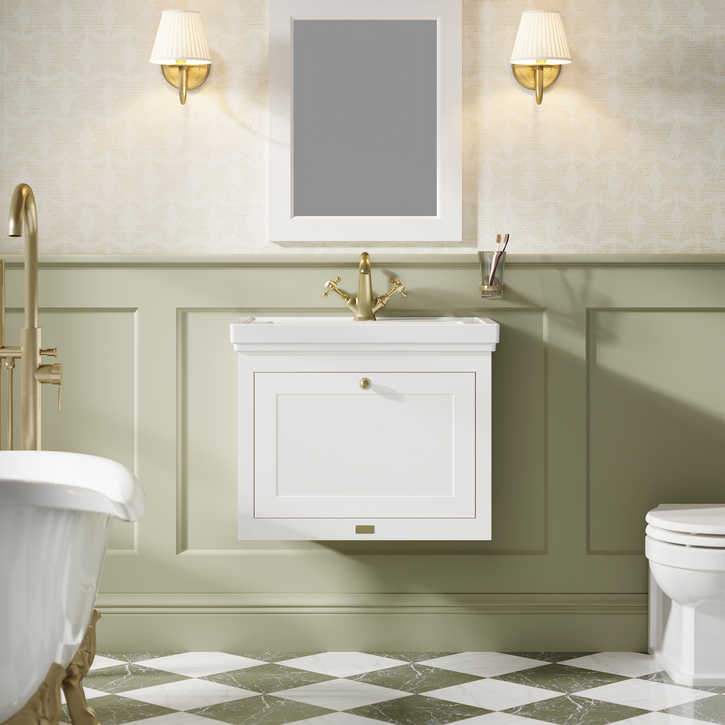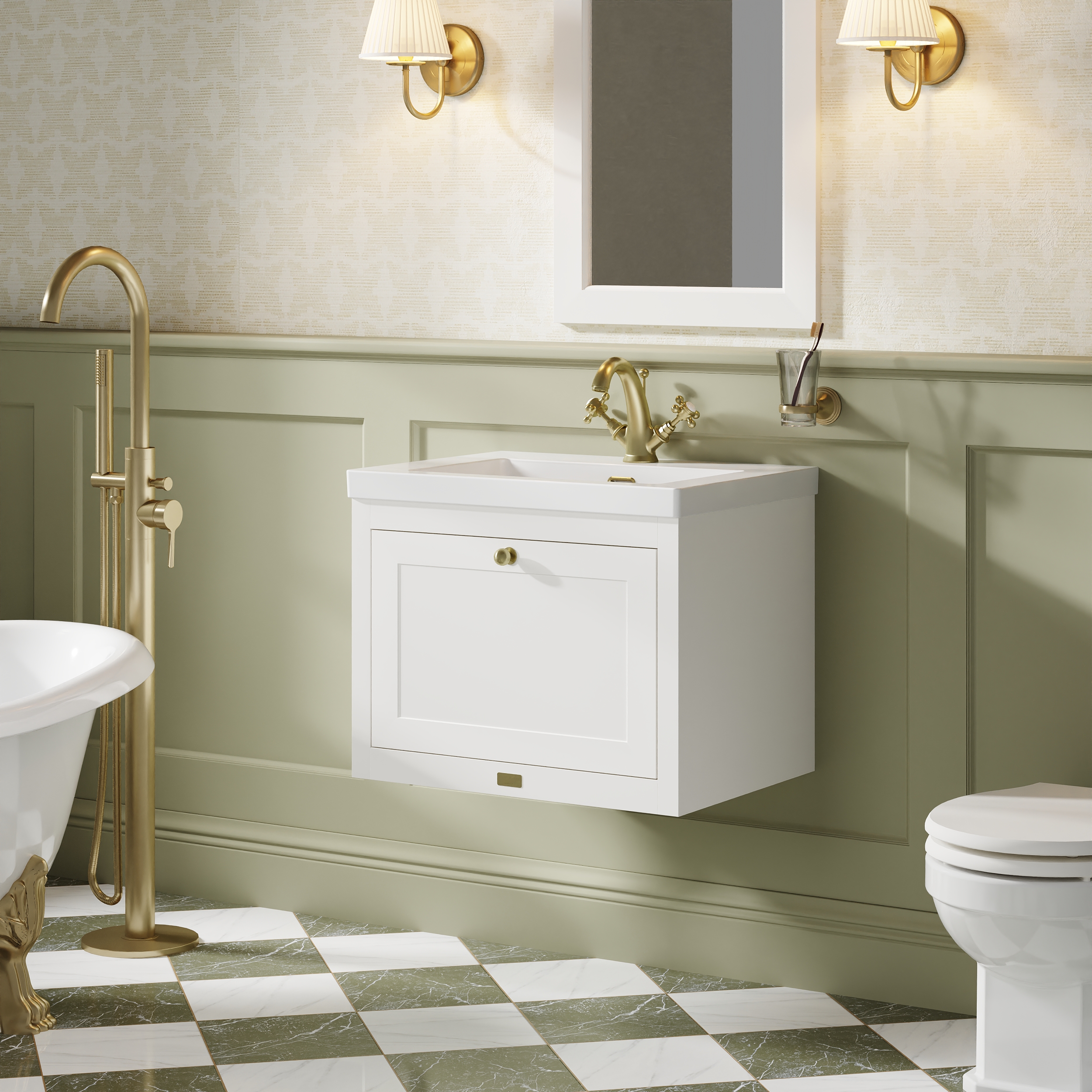 Bayswater Hartleigh 600mm Pointing White Wall Hung Vanity Unit With 1 Tap Hole Basin