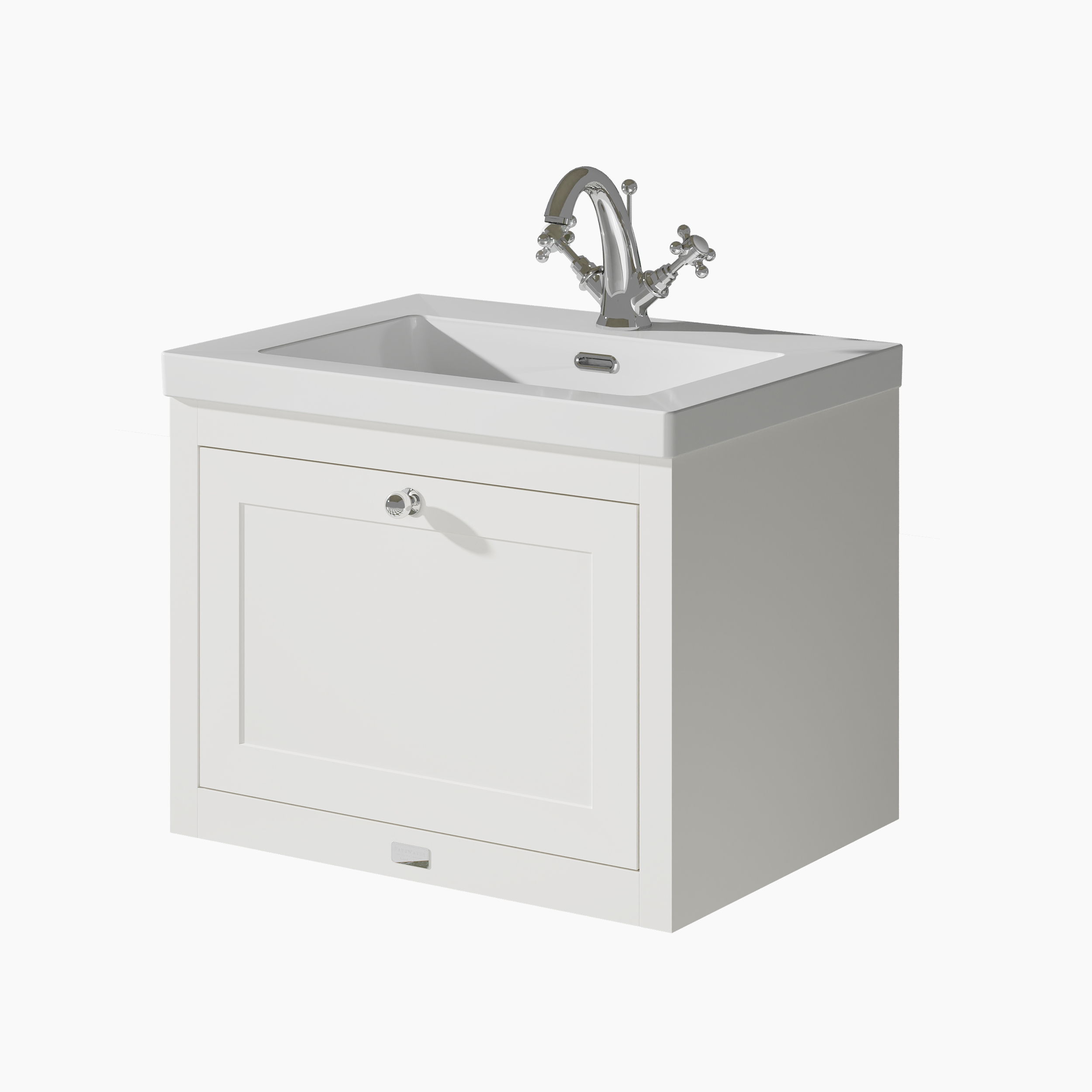 Bayswater Hartleigh 600mm 1 Drawer Cabinet and 1TH Basin - Pointing White