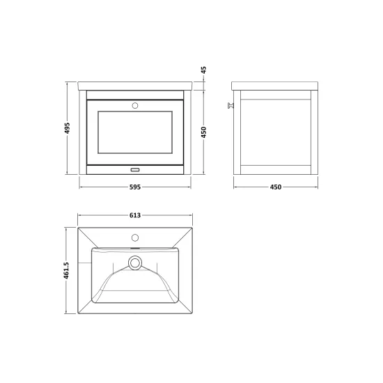 Hartleigh 600mm 1 Drawer Cabinet and 1TH Basin