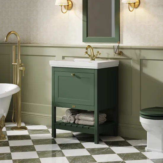 Bayswater Hartleigh 600mm 1 Drawer Cabinet and 1TH Basin - Hunter Green