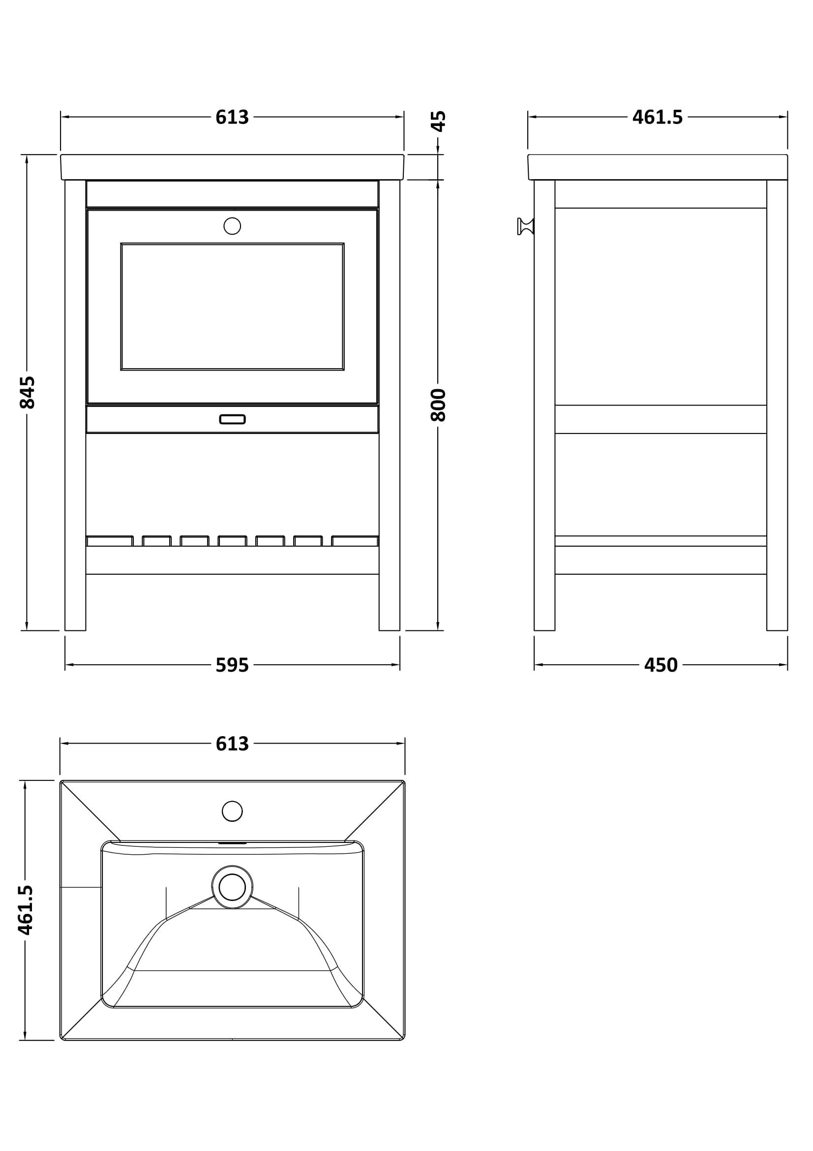 Hartleigh 600mm 1 Drawer Cabinet and 1TH Basin