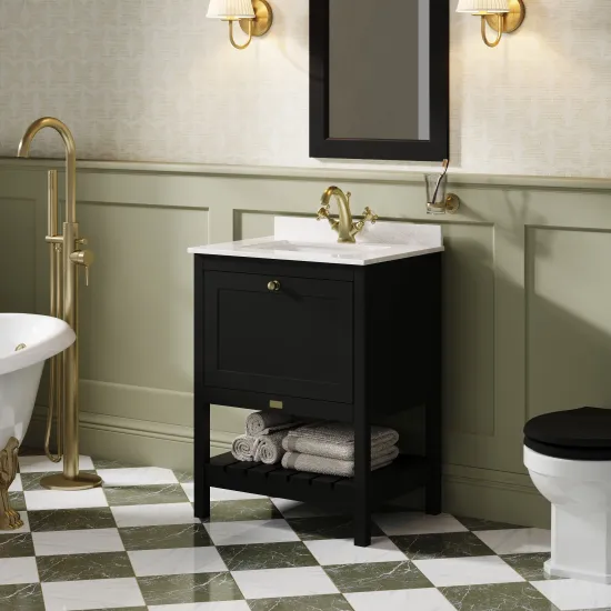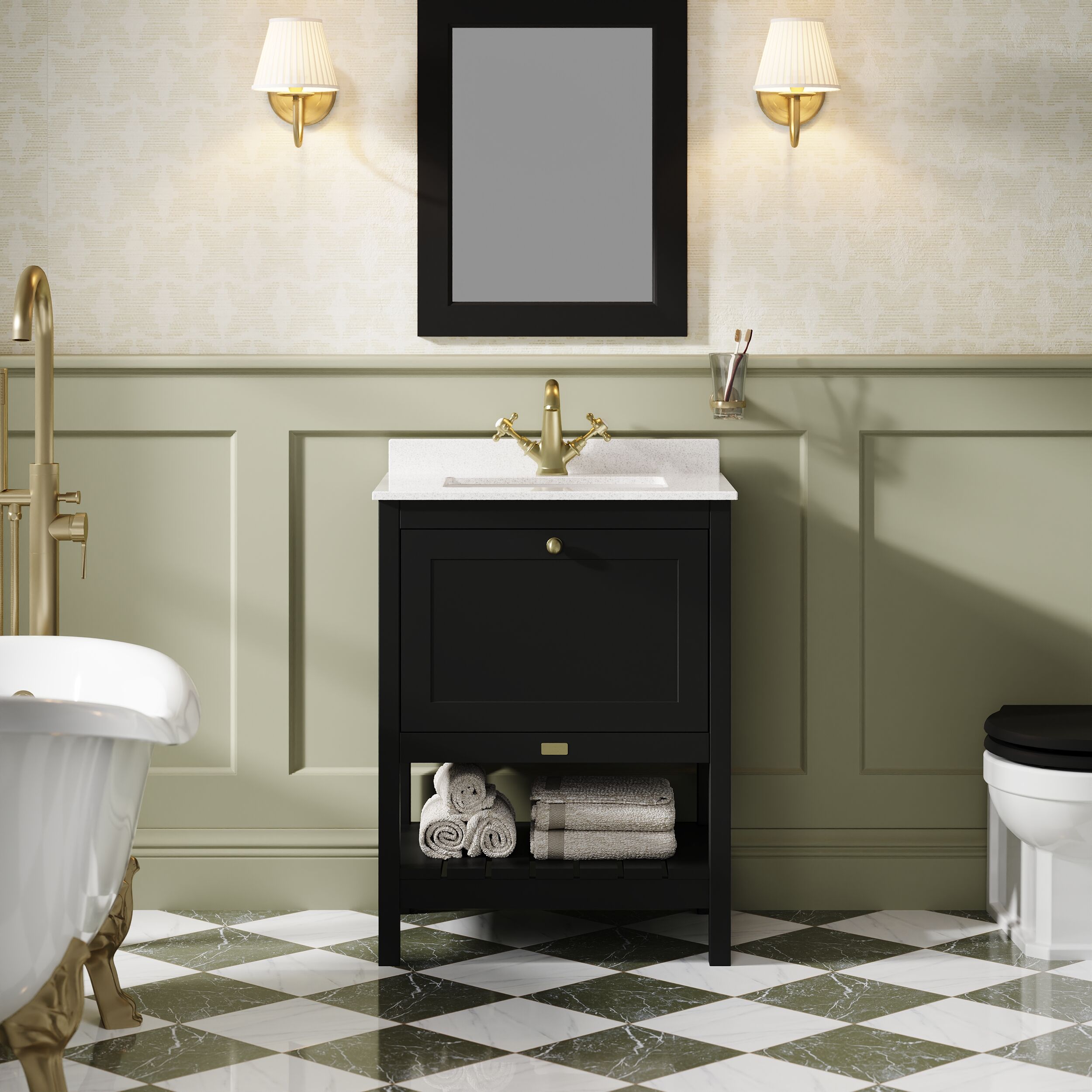 Bayswater Hartleigh 600mm Matt Black Floor Standing Vanity Unit With 1 Tap Hole Marble Top Basin