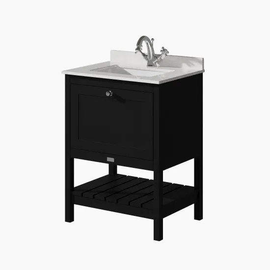 Bayswater Hartleigh 600mm 1 Drawer Cabinet and 1TH Marble Top - Matt Black