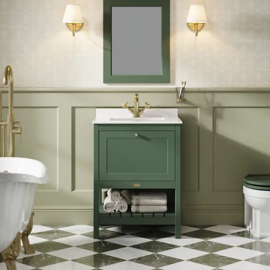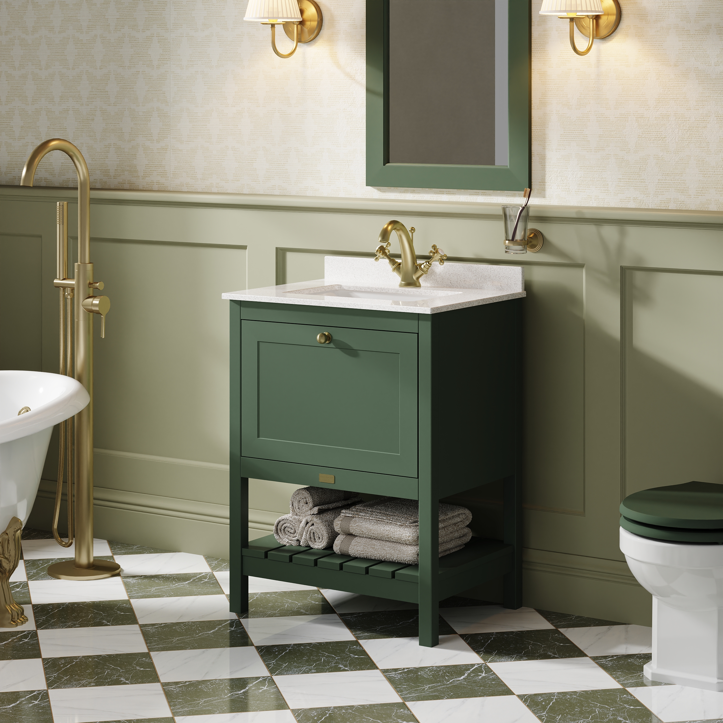 Bayswater Hartleigh 600mm Hunter Green 1 Drawer Floor Standing Vanity Unit With 1 Tap Hole Marble Top Basin