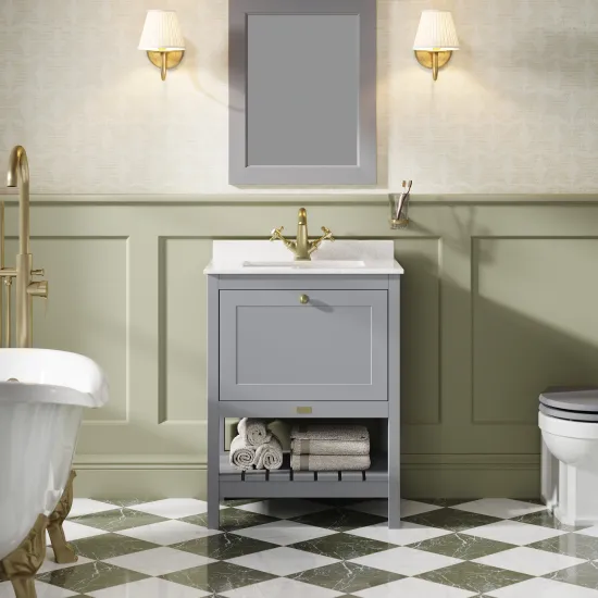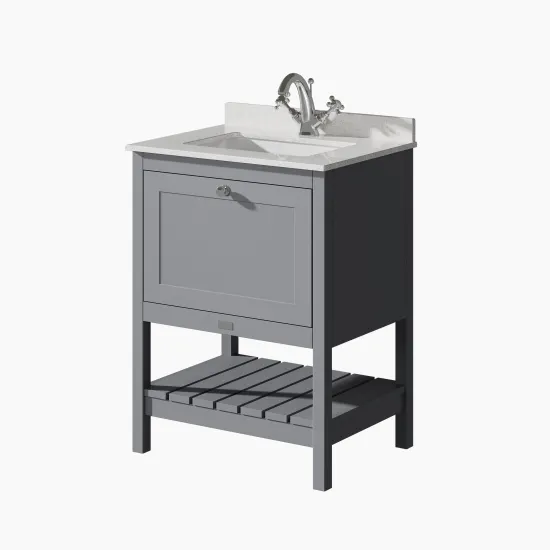 Bayswater Hartleigh 600mm Plummett Grey Vanity Unit With 1 Tap Hole Marble Top Basin