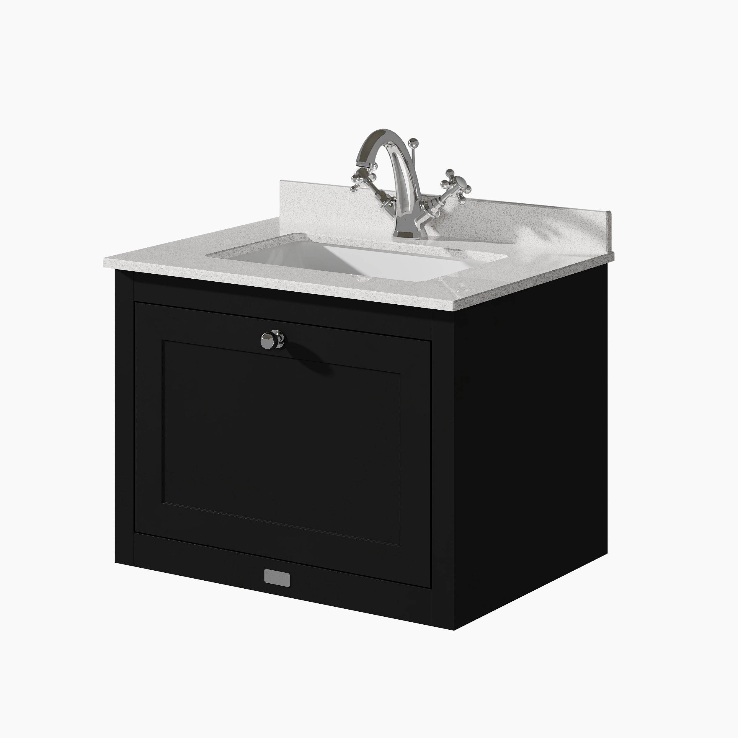 Bayswater Hartleigh 600mm Matt Black 1 Drawer Wall Hung Vanity Unit With 1 Tap Hole Marble Top Basin