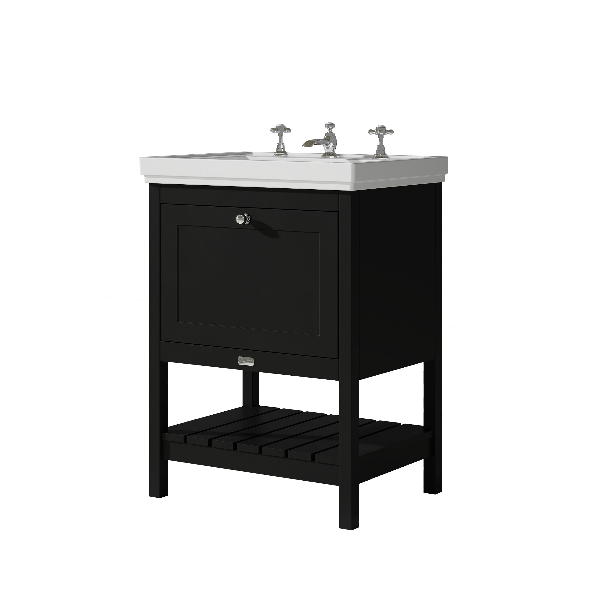 Bayswater Hartleigh 600mm Matt Black 1 Drawer Floor Standing Vanity Unit With 3 Tap Hole Basin