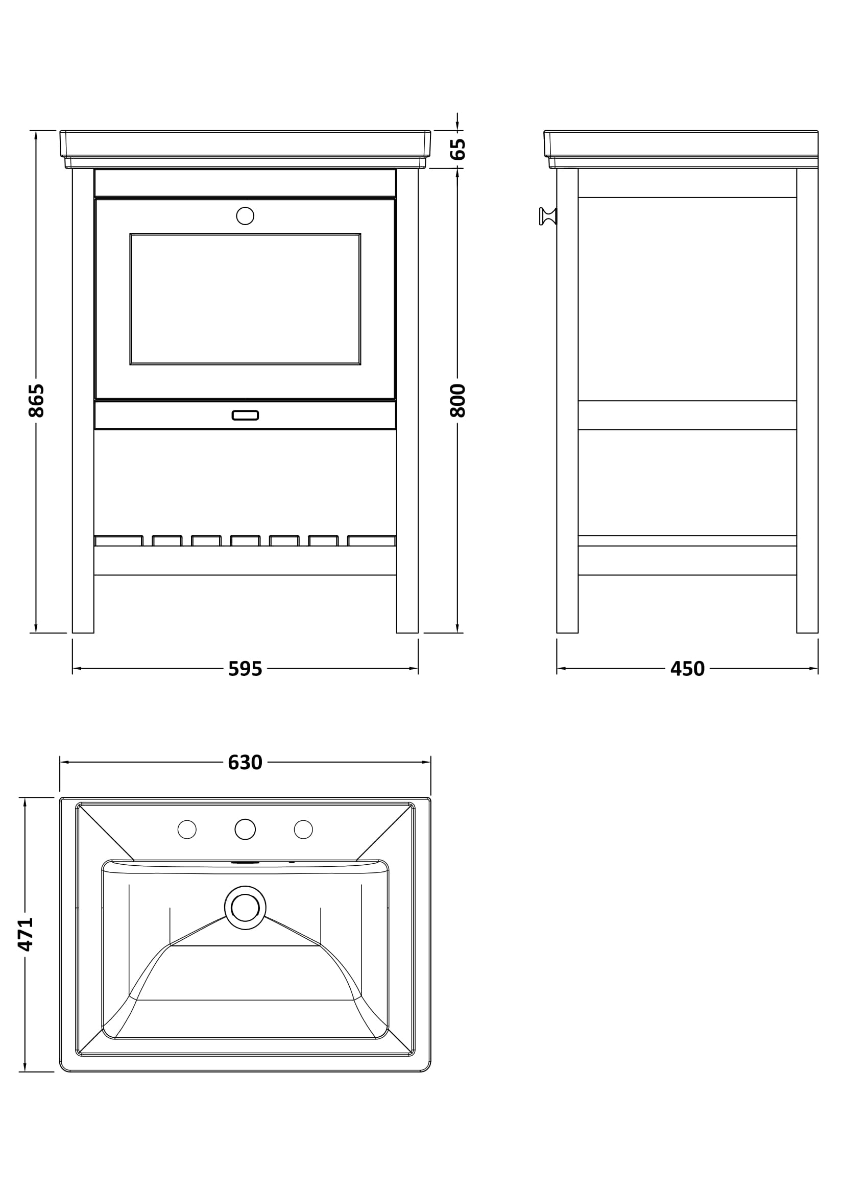 Hartleigh 600mm 1 Drawer Cabinet and 3TH Basin