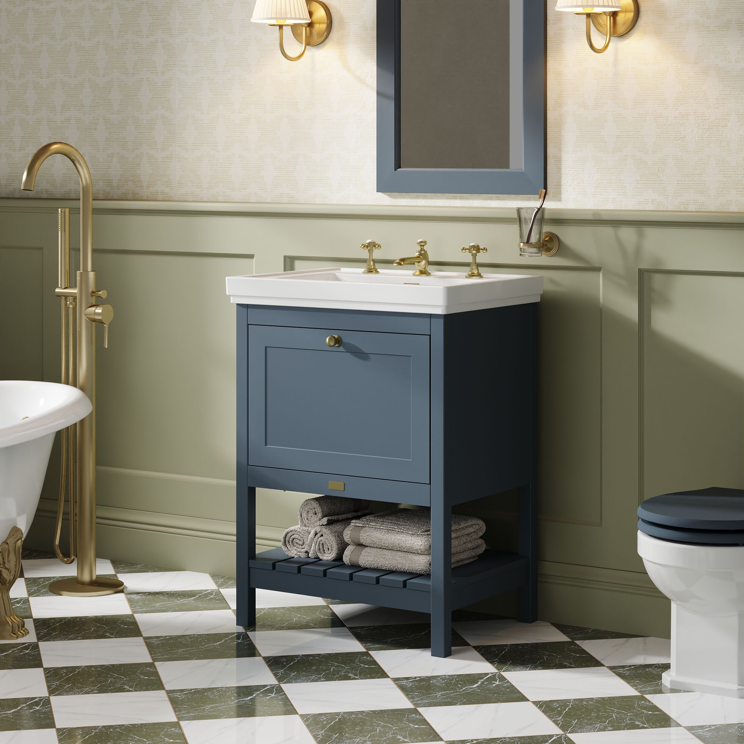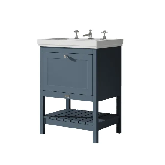 Bayswater Hartleigh 600mm 1 Drawer Cabinet and 3TH Basin - Stiffkey Blue