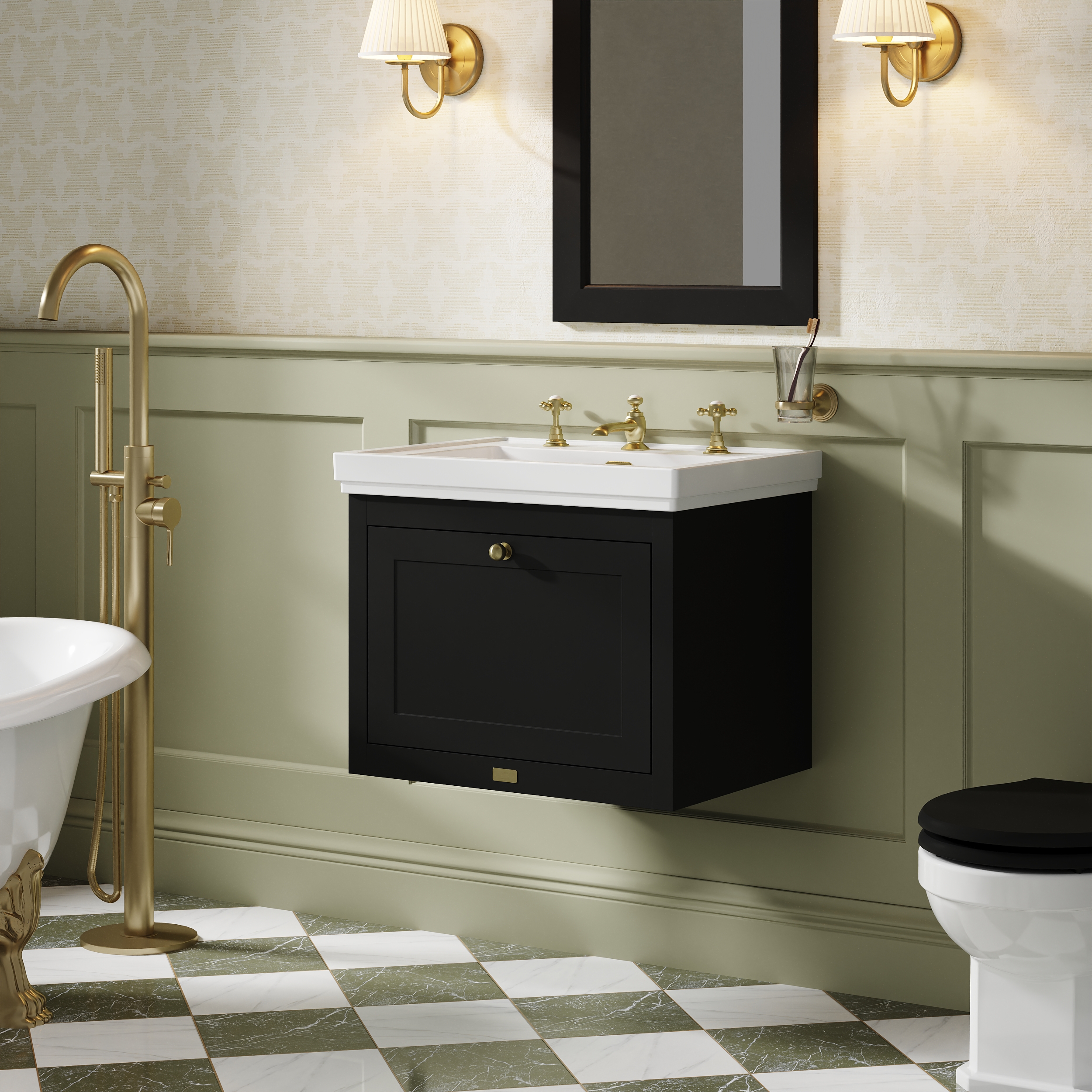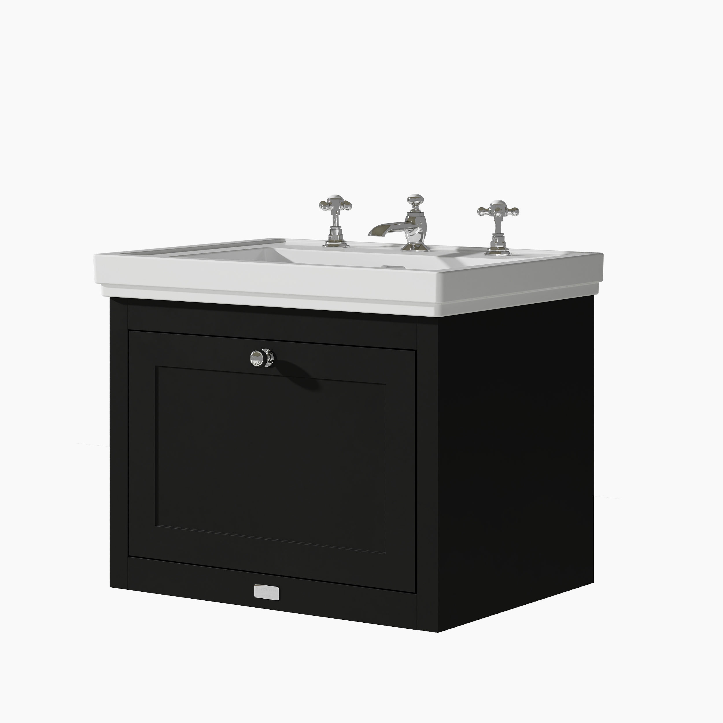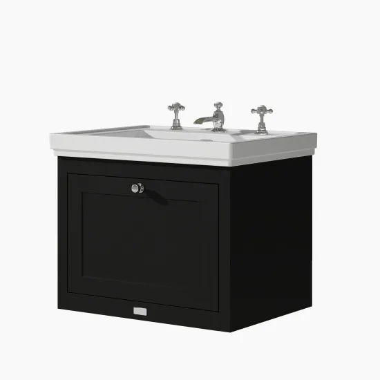 Bayswater Hartleigh 600mm Matt Black Wall Hung Vanity Unit With 3 Tap Hole Basin
