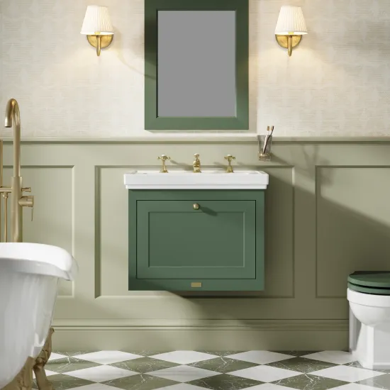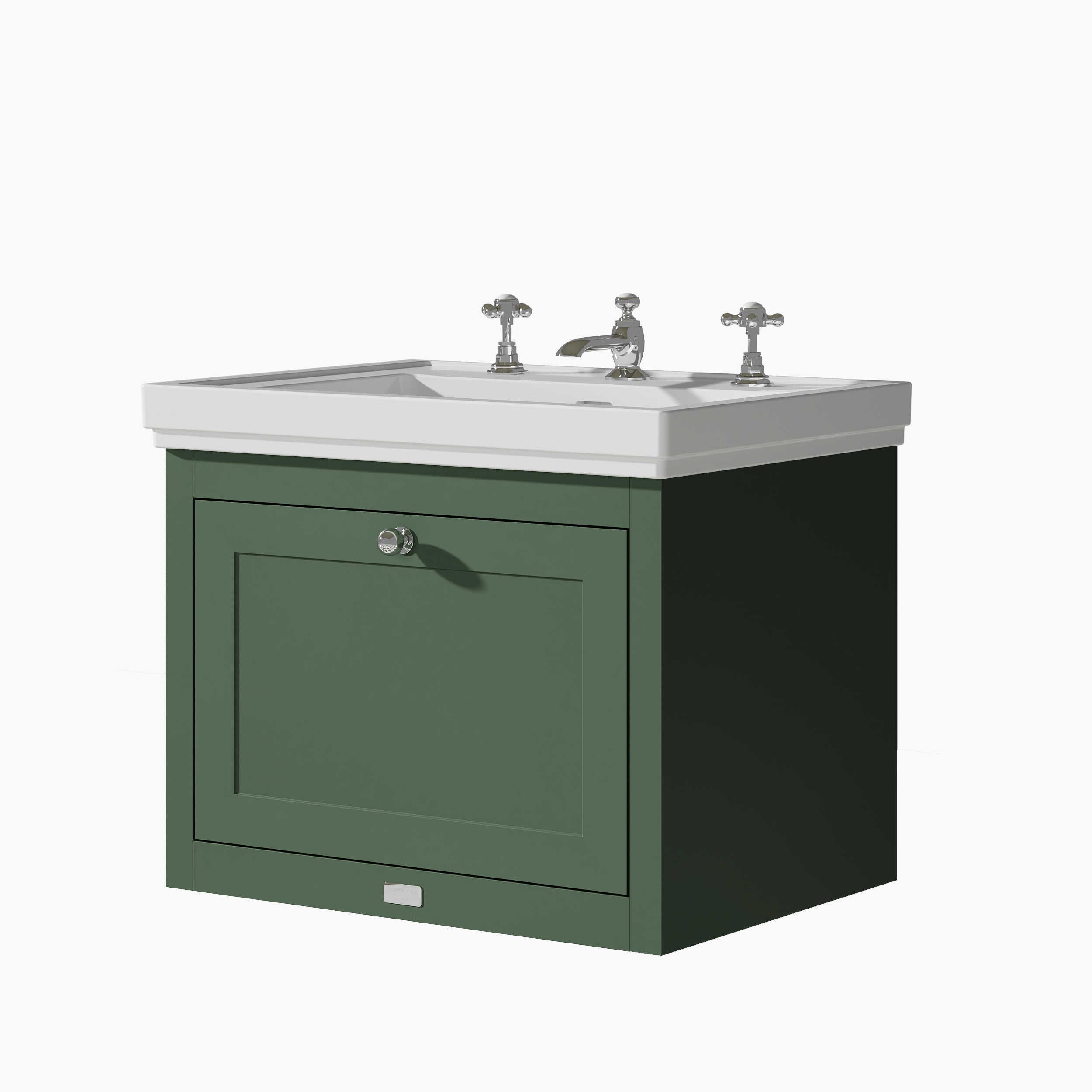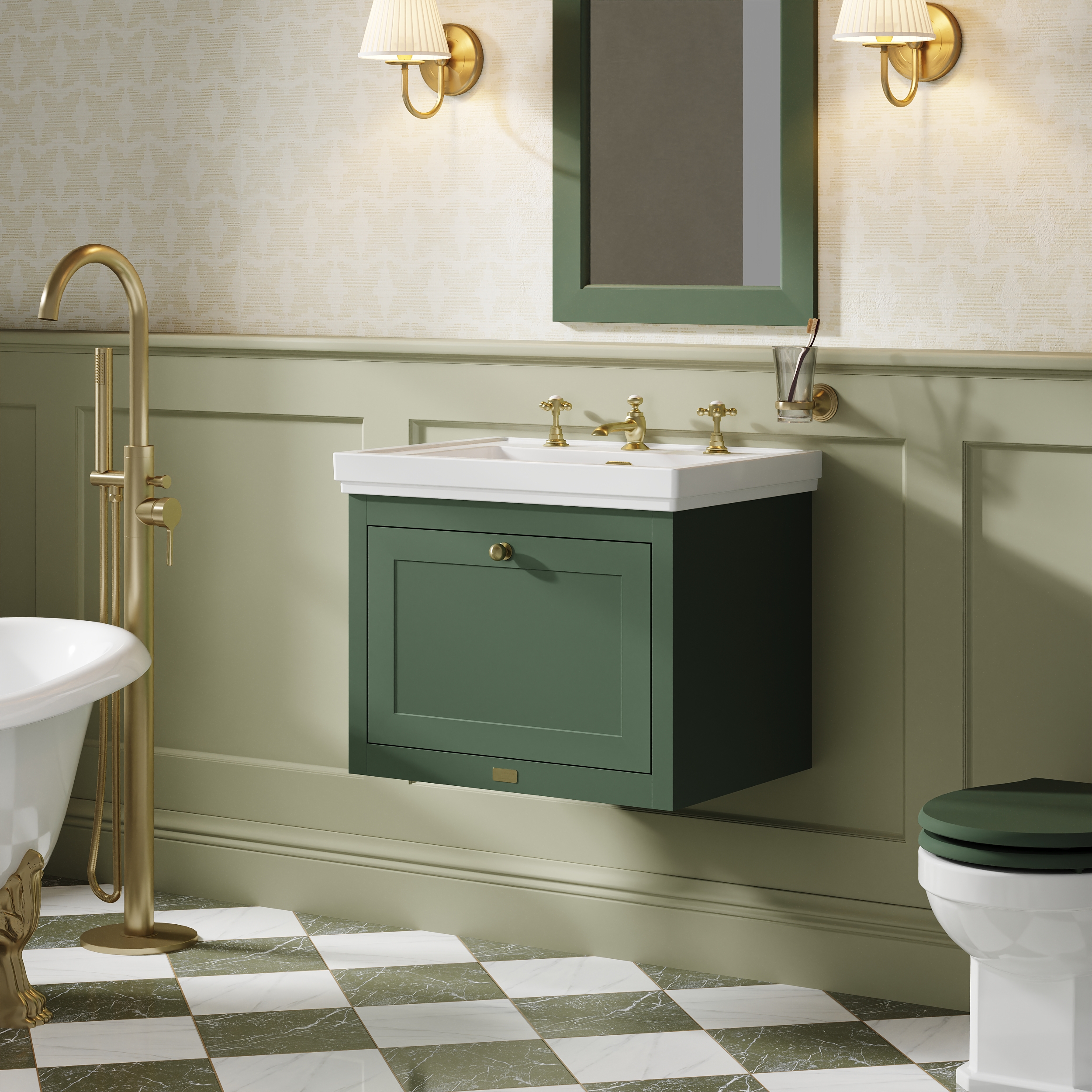 Bayswater Hartleigh 600mm Wall Hung Traditional Hunter Green 1 Drawer Vanity Unit With 3 Tap Hole Basin