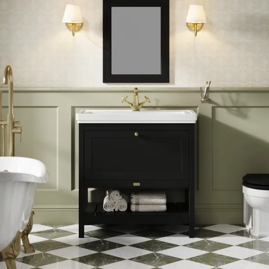 Bayswater Hartleigh 800mm Matt Black Vanity Unit With 1 Tap Hole Basin