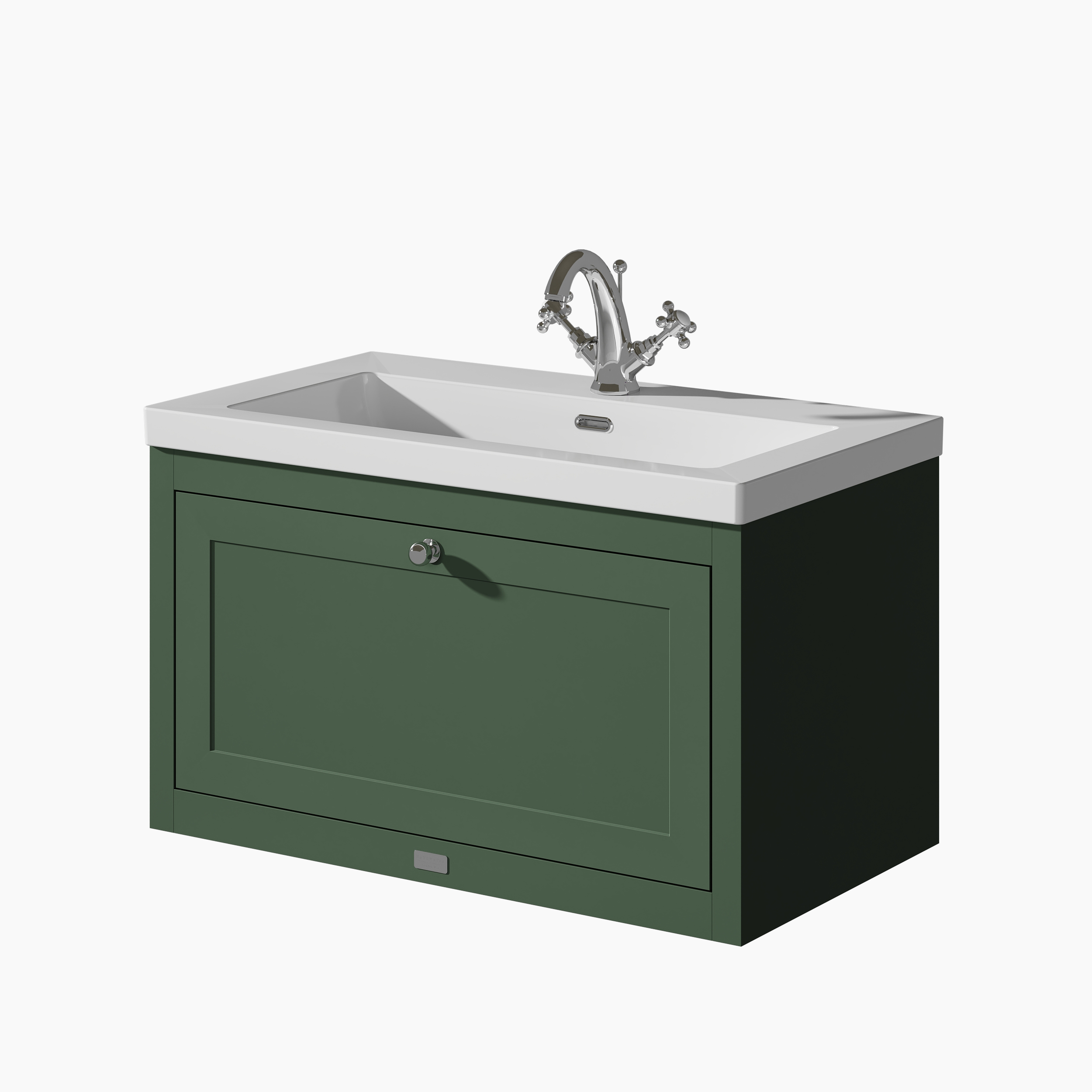 Bayswater Hartleigh Traditional 800mm Hunter Green Wall Hung 1 Drawer Vanity Unit with 1 Tap Hole Basin