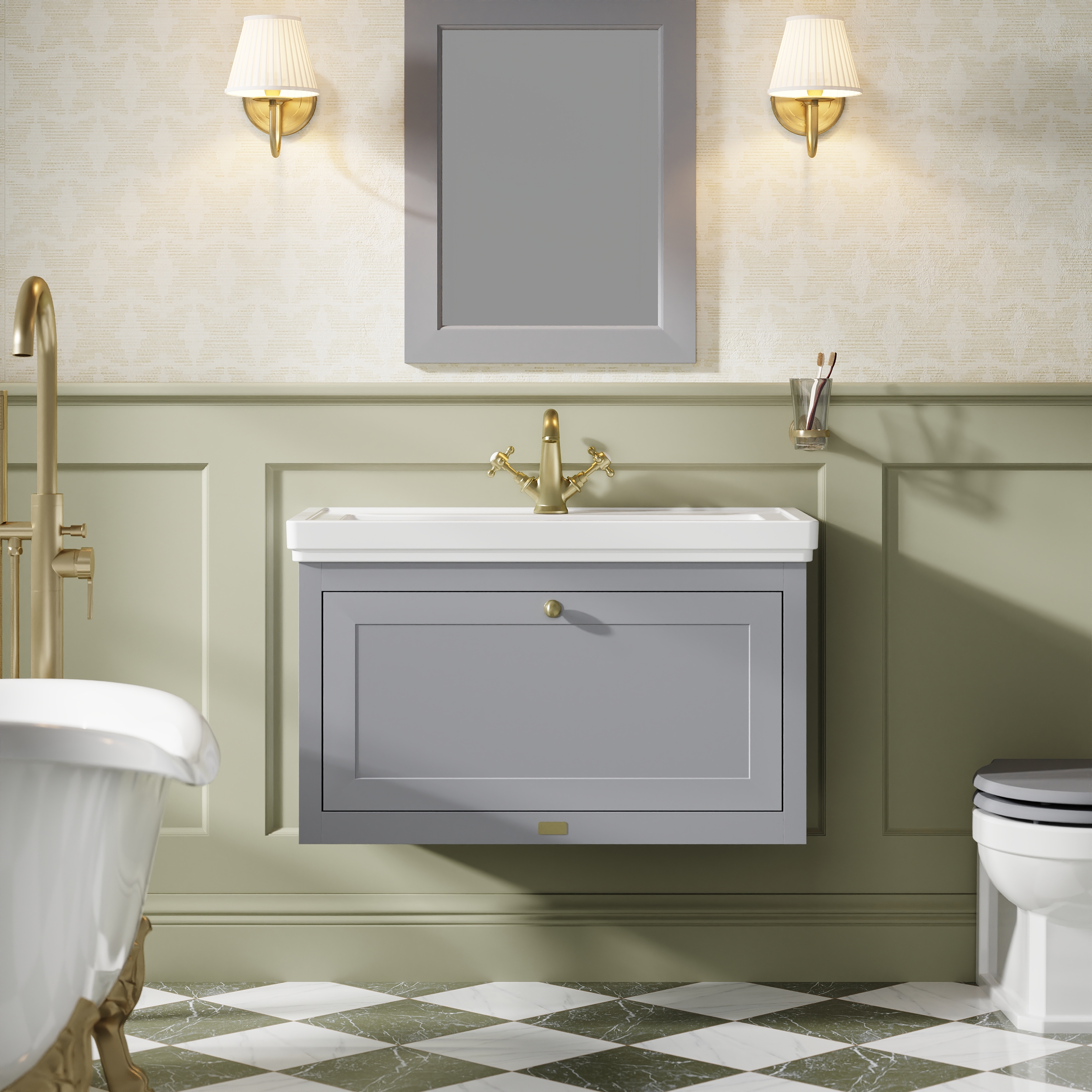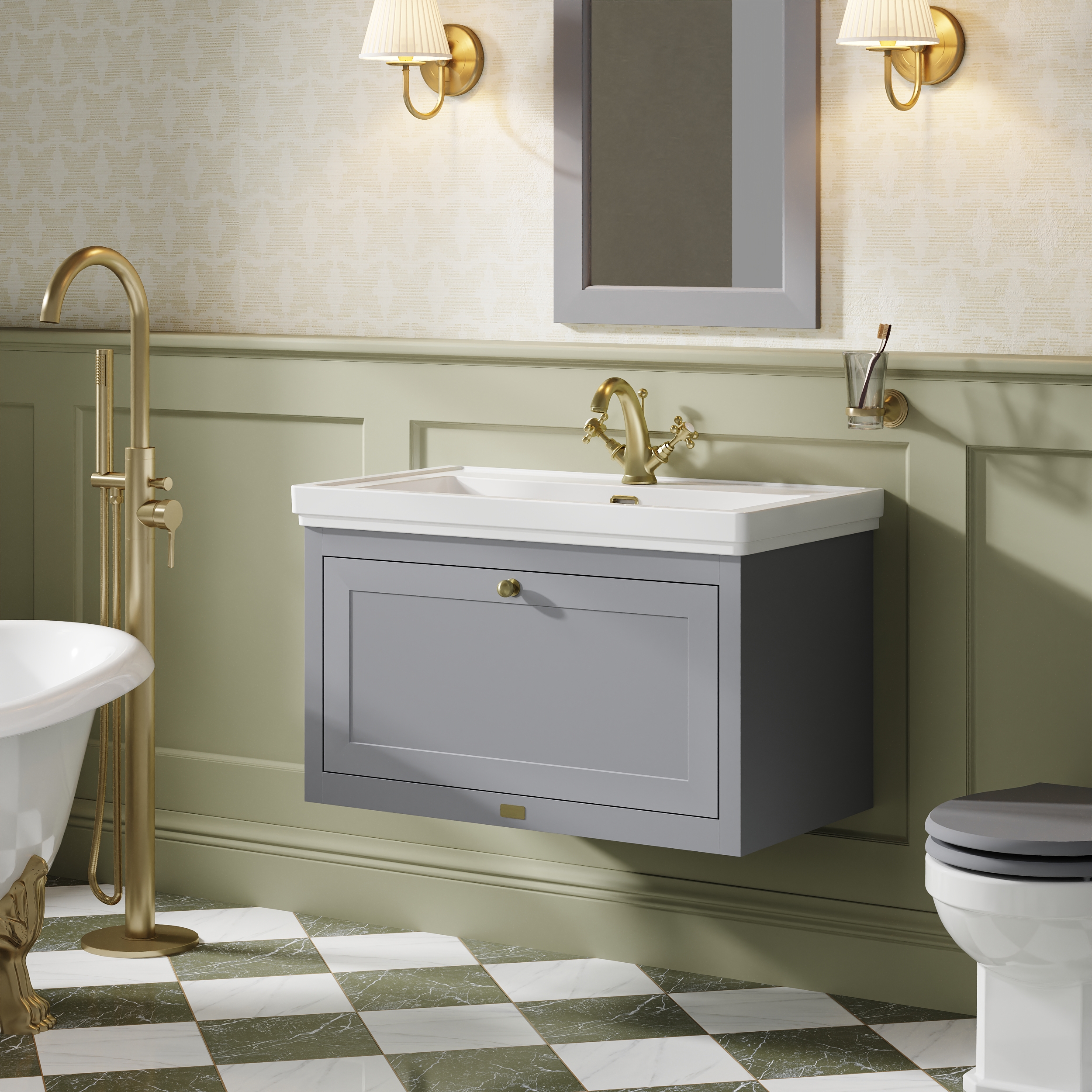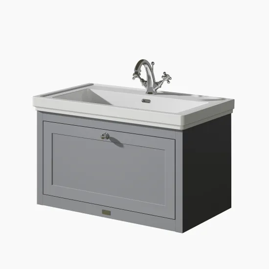 Bayswater Hartleigh 800mm Plummett Grey Traditional Wall Hung Vanity Unit With 1 Tap Hole Basin
