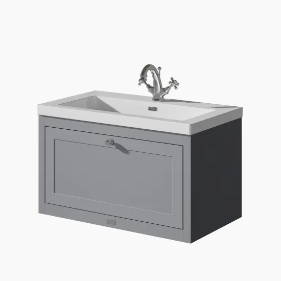 Bayswater Hartleigh 800mm Plummett Grey Wall Hung Vanity Unit With 1 Tap Hole Basin