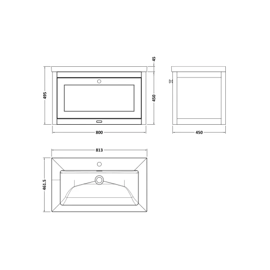 Bayswater Hartleigh 800mm 1 Drawer Cabinet and 1TH Basin - Plummett Grey
