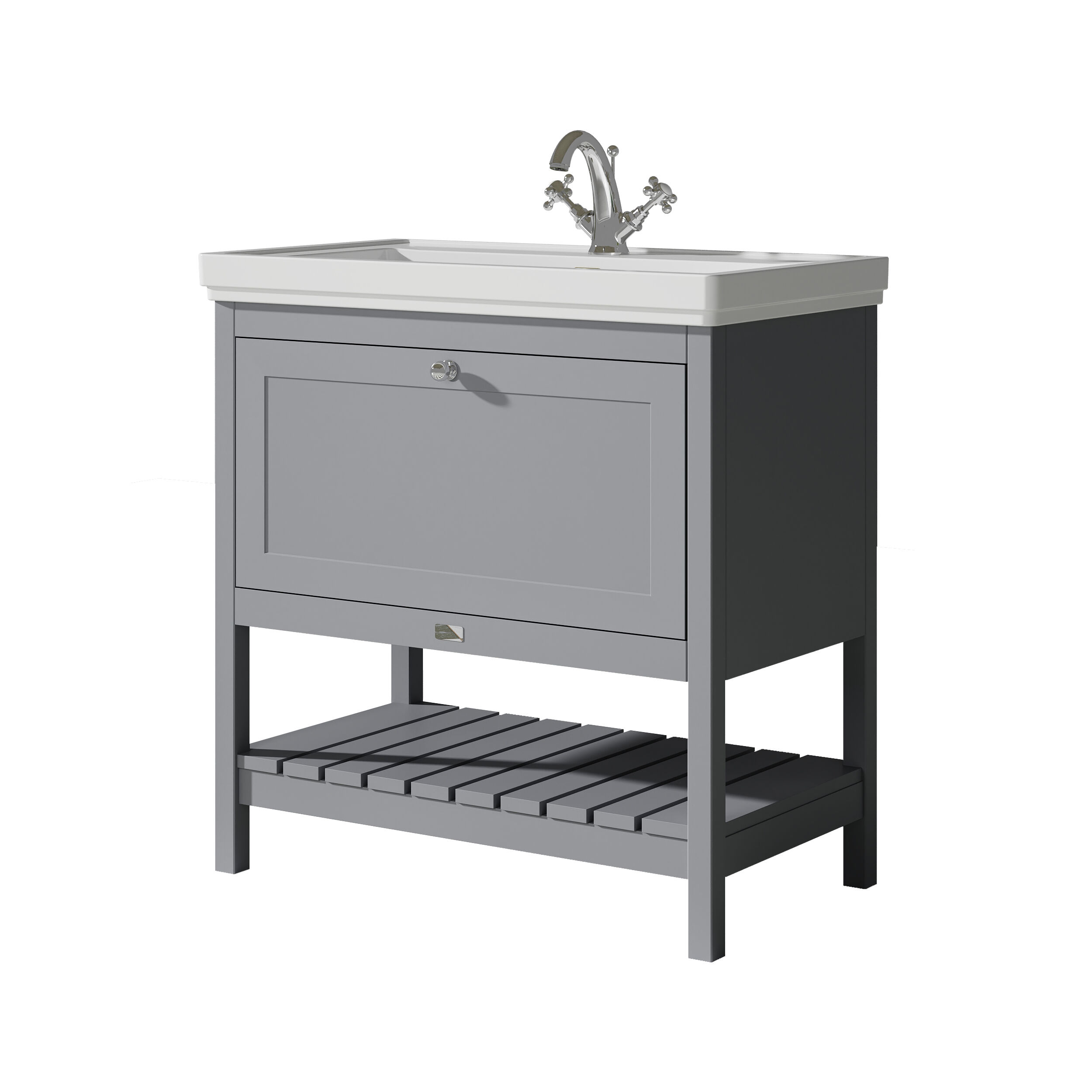 Bayswater Hartleigh 800mm Plummett Grey Floor Standing Vanity Unit With 1 Tap Hole Basin