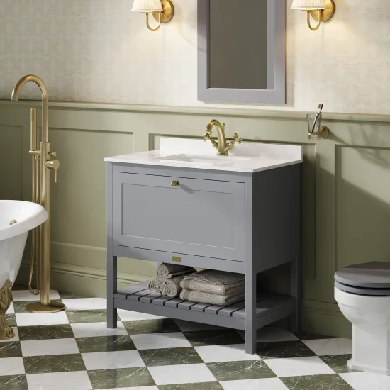 Bayswater Hartleigh 800mm 1 Drawer Cabinet and 1TH Marble Top - Plummett Grey
