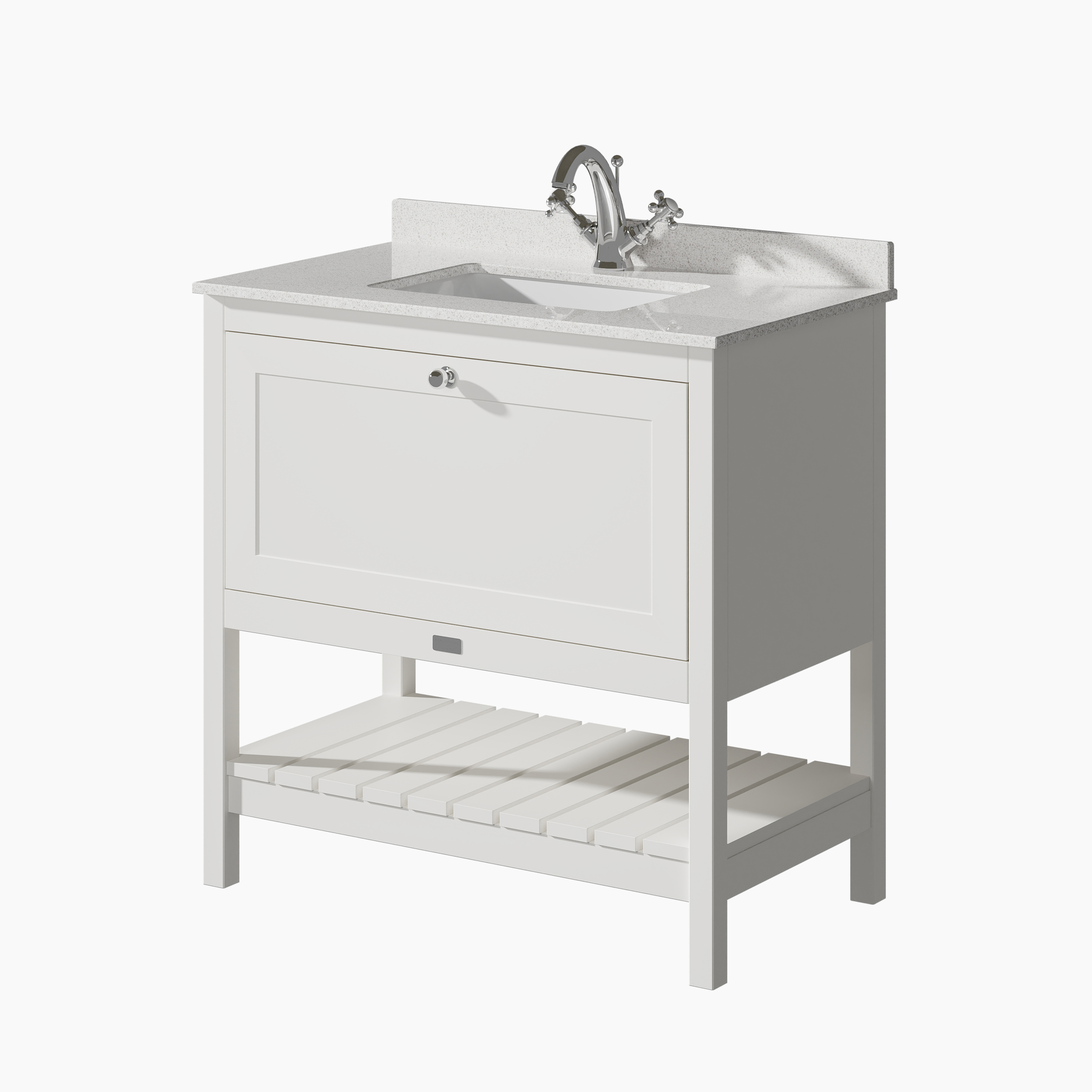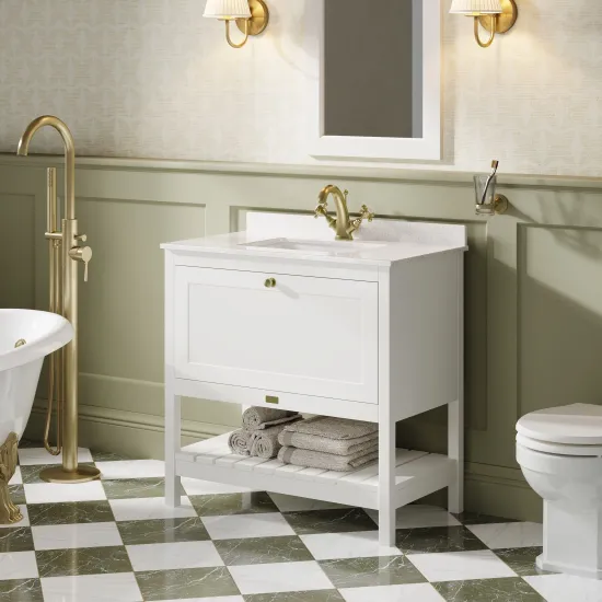 Bayswater Hartleigh 800mm Pointing White 1 Drawer Floor Standing Vanity Unit With 1 Tap Hole Marble Top Basin
