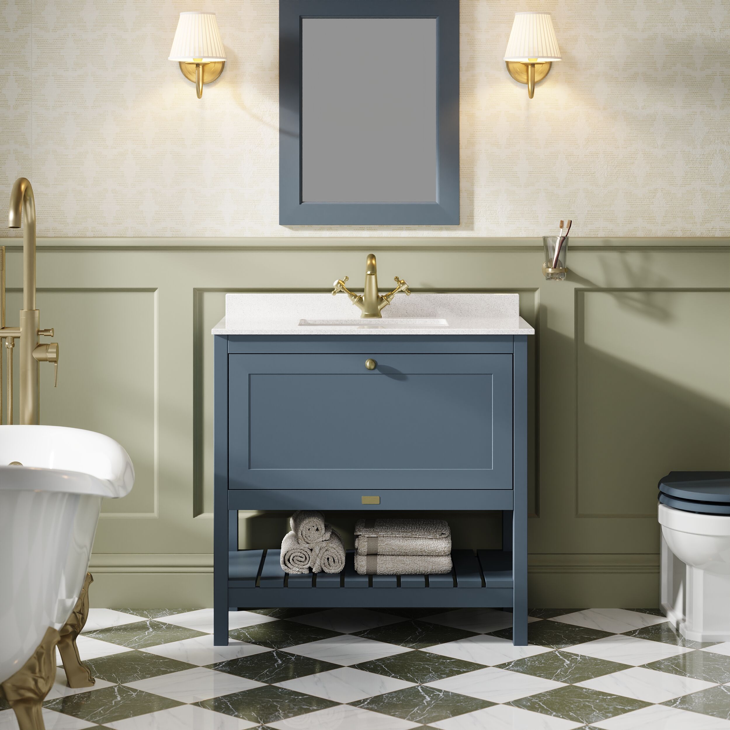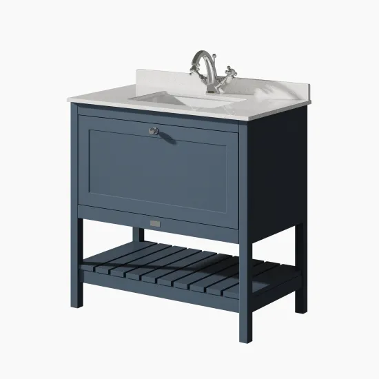 Bayswater Hartleigh 800mm 1 Drawer Cabinet and 1TH Marble Top - Stiffkey Blue