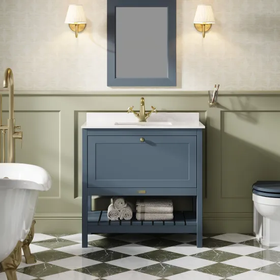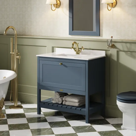 Bayswater Hartleigh 800mm Stiffkey Blue 1 Drawer Cabinet With 1 Tap Hole Marble Top Basin