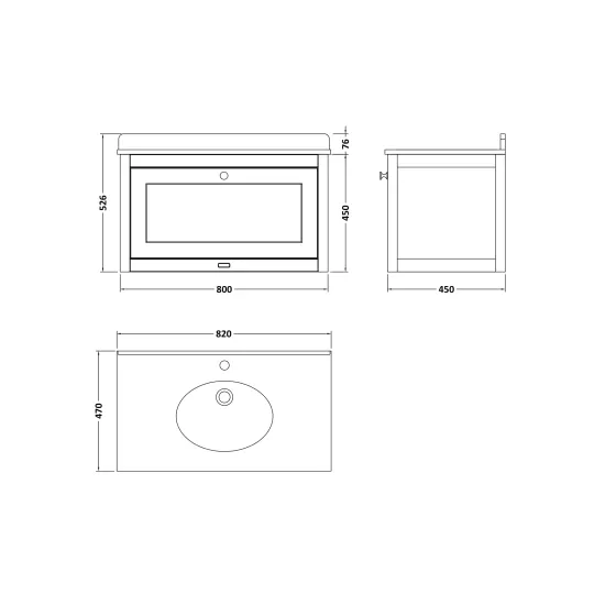 Bayswater Hartleigh 800mm 1 Drawer Cabinet and 1TH Marble Top - Plummett Grey